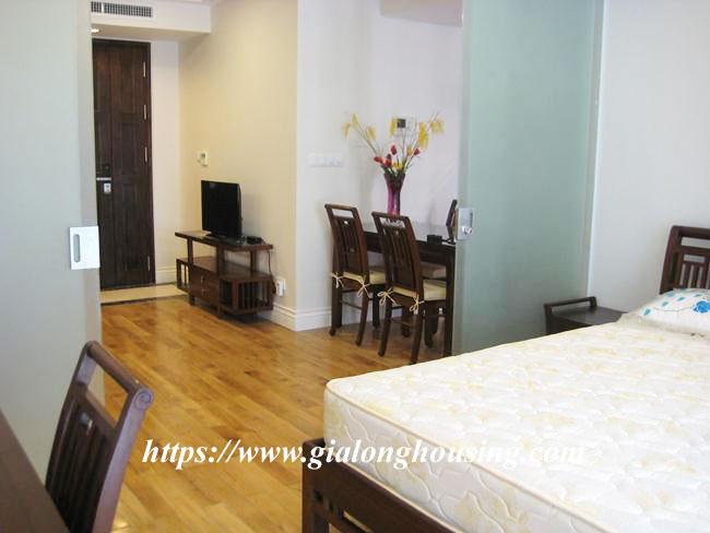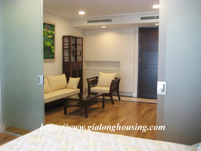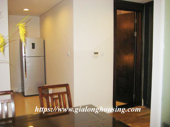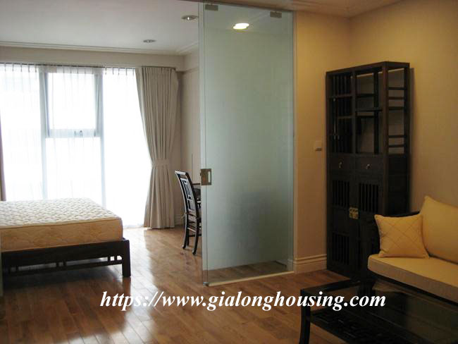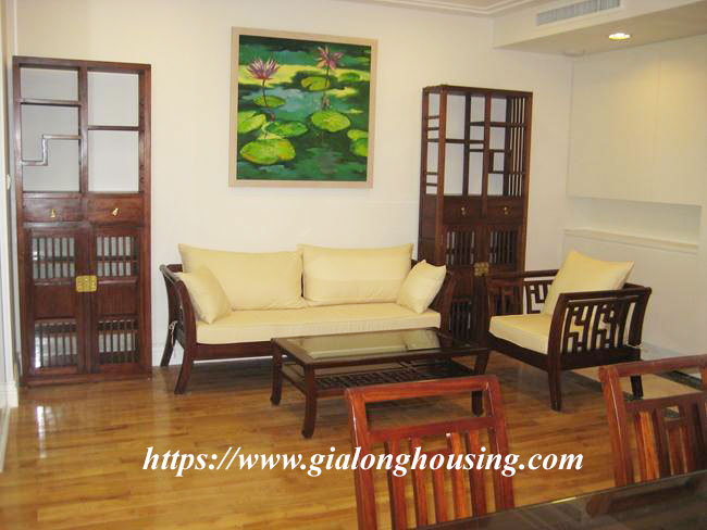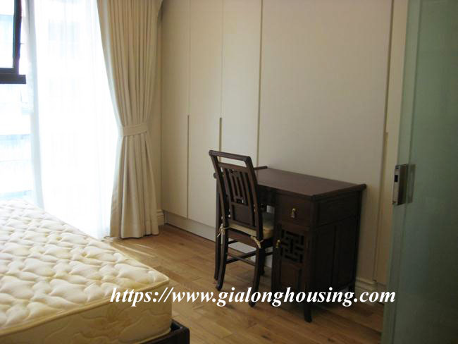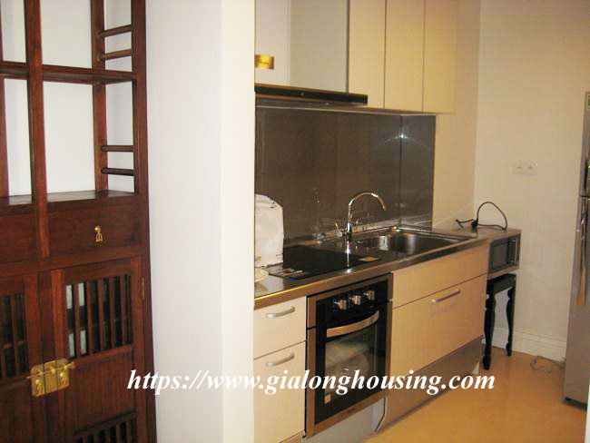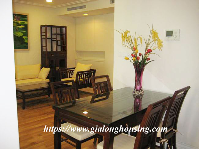 This beautiful apartment is located in high floor of Hoang Thanh building, 114 Mai Hac De street, Hai Ba Trung district. The building is designed in French style that can meet your demand for a comfortable and convenient accommodation. It has supermarket, security 24/24 The total area is 56 sq m. The furniture and equipment are imported from Japan, Italy and France. Contact us to visit it today