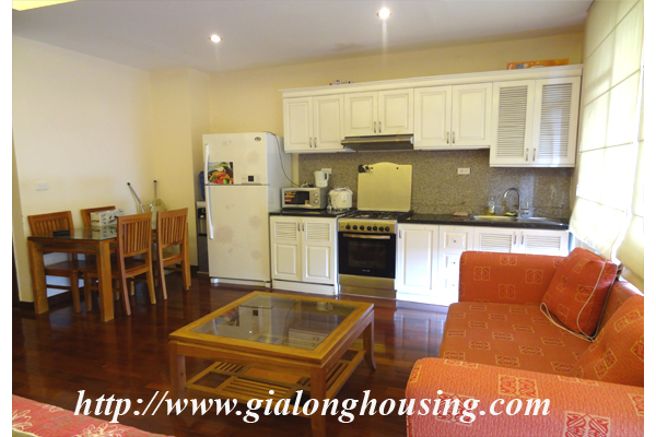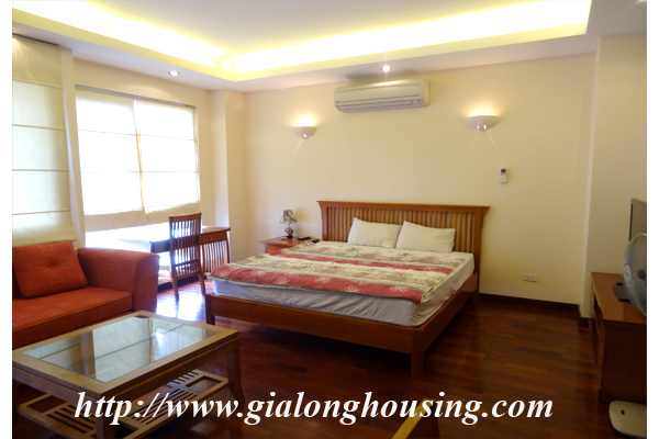 Studio serviced apartment for rent Kham Thien street, Dong Da district, Hanoi . It has an usable size of 50 sq m, composed of 1 bedroom, 1 bathroom , living room and kitchen. Fully furnished and equipped. It has a balcony overlooking the road. Facilities : air conditioners, internet connection, phone connection, cable television, etc … Price for rent : 500 USD/month (including : internet, cable Tivi, water, housekeeping services twice a week )