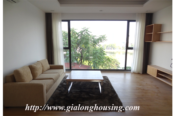 Lake view serviced apartment for rent is in Pham Huy Thong street,Ba Dinh district with area is 80 sqm designed 02 bedrooms,01 bathroom,fully furnished,wooden floor.Prices 1,200usd/month including internet,cable Tv,water fee