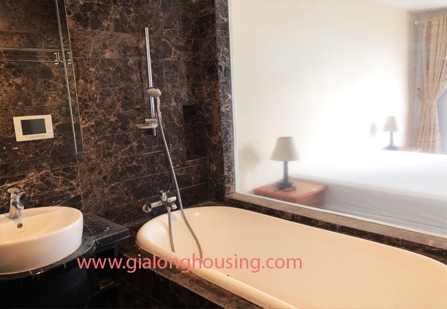 This apartment is located on the mid-floor of Block W, Golden Westlake. It has a total living area of 150sqm, combines 3 bedrooms, 2 bathrooms, living room, kitchen and dining area.The apartment is fully furnished with high quality facilities, covered with wooden floor. Nice balcony has a panoramic view of the city.