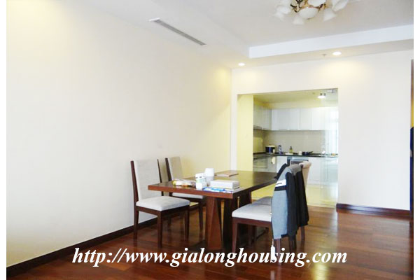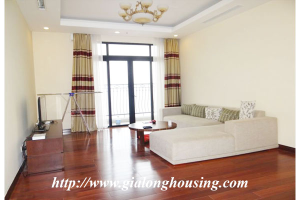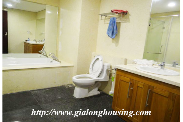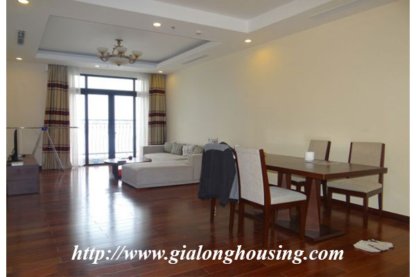 The total area is 145 sq m, this apartment is located in high floor with very good view and fresh air. There are 03 bedrooms and 02 bathrooms with full furniture in the whole apartment. The tenants can enjoy the high quality services such as four season swimming pool, security, gym, shopping center, international schools.