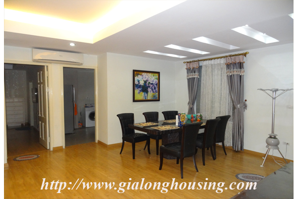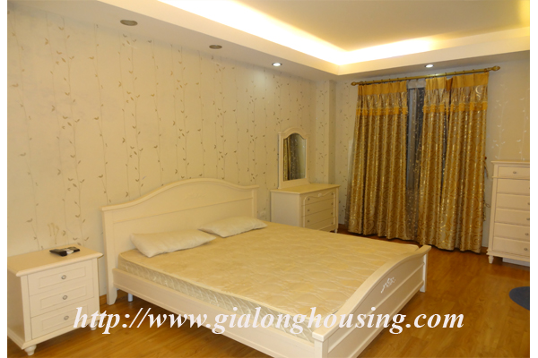 A nice 03 bedroom serviced apartment for rent, locating in Van Cao street, Ba Dinh District, Hanoi, this is a nice and quiet alley without busy traffic, it is a big apartment with area of 180 sqm, composed of a living room, 03 nice bedrooms, 02 bathrooms, functioning kitchen with oven, dining table with six chairs