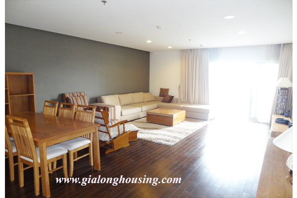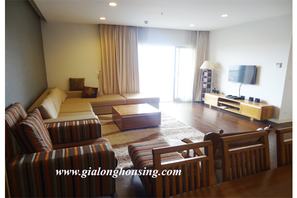 The total area of this apartment is 172 sq m with 04 bedrooms and 03 bathrooms, suitable for a family or a group of friends. All rooms are bright and nice with large windows. All furniture are nice and modern. The building has swimming pool, gym, receptionist, security, restaurant.