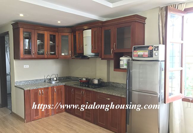 This nice two bedroom apartment is located in Kim Ma street, not far from Dao Tan and Lieu Giai street, walking distance to Lotte building, Daewoo hotel, Daeha shopping center. The apartment has just been renovated and ready for the tenants to move in. The total area is 90 sq m, including 02 bedrooms and 01 bathroom.