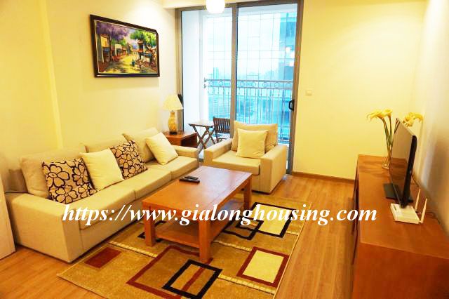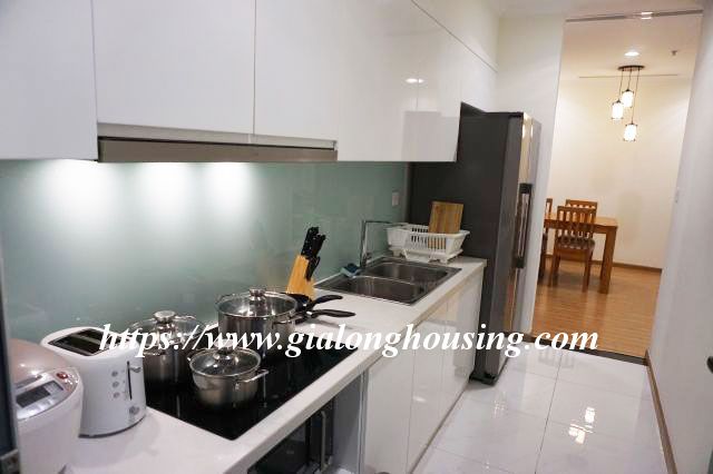 This 2 bedroom apartment is located in 20th floor of Vinhomes Nguyen Chi Thanh, Dong Da district. The total area is 86 sq m, one big living and open kitchen, 02 bedrooms and 02 bathrooms with bathtub. The building has gym, pool and shopping center.