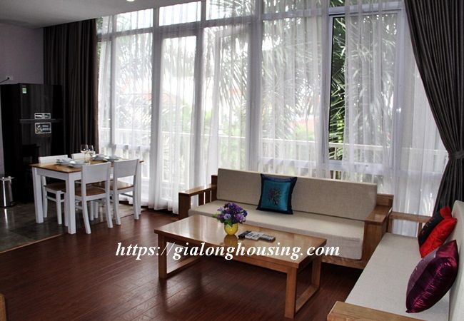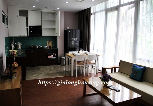 This new serviced apartment is located in lane 236 Au Co, Tay Ho district, Hanoi. The total area is 80 sq m , including 02 bedrooms and 02 bathrooms. The apartment has modern style that make you feel comfortable and cozy like home. The rent includes: cable TV, wireless internet, tap water and cleaning service.
