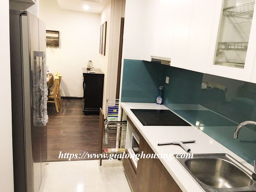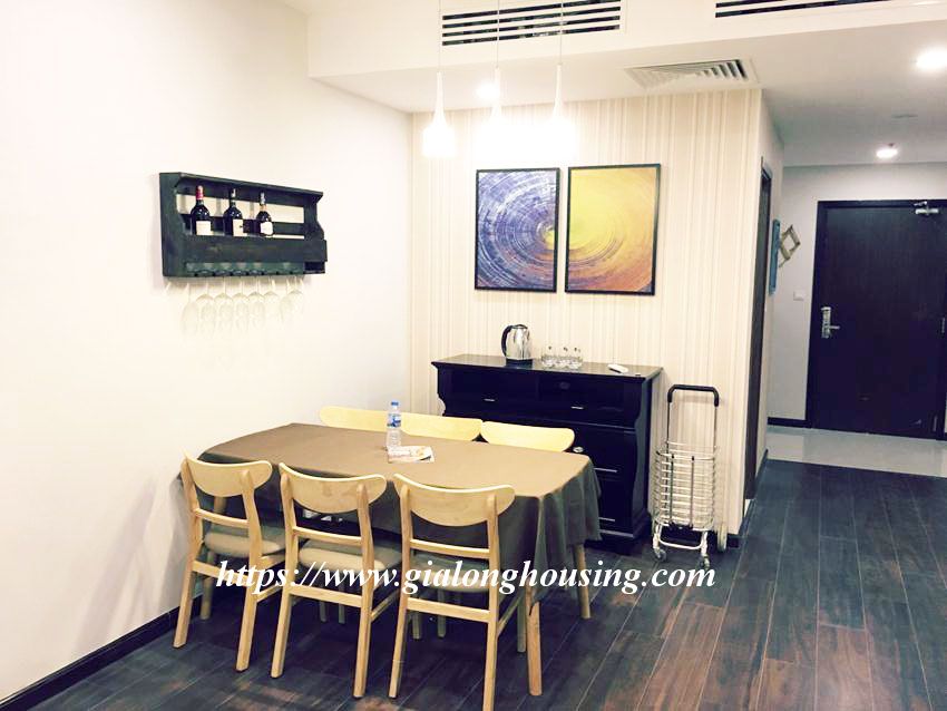 This This brand new 2 bedroom apartment is located in high floor of Discovery Complex, Cau Giay district. The apartment is furnished by high quality furniture and equipment. The total area is 94 sq m, 02 bedrooms and 02 bathrooms. The building has supermarket, gym, pool and security 24/24.