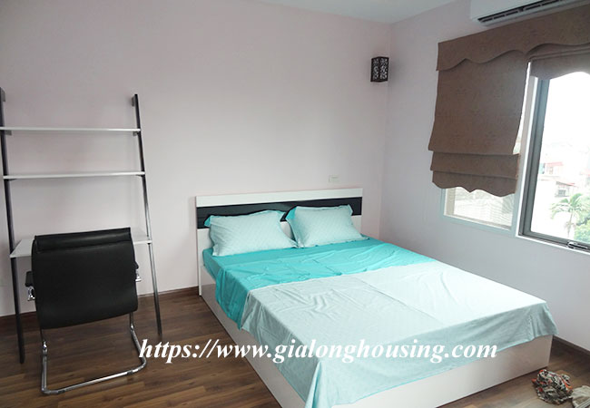 This 2 bedroom apartment is located in Van Cao street, the opposite site of Quan Ngua stadium. The building is not far from Lotte building, Japanese embassy and West lake. The total area is 85 sq m, including 02 bedrooms and 02 bathrooms. It is fully furnished so that the tenants can visit it any time. The rent is included cable TV, wireless internet and tap water.