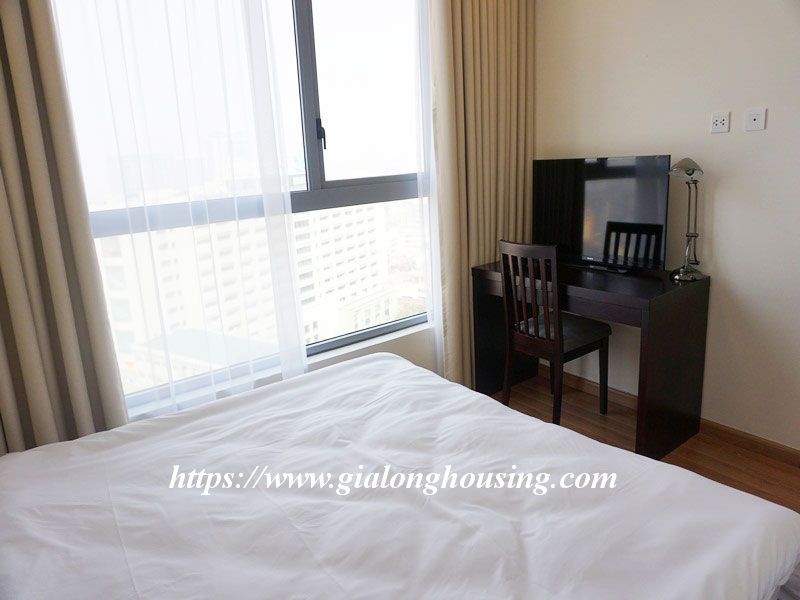 This 2 bedroom apartment is located in Vinhomes 54 Nguyen Chi Thanh, not far from Lotte and Law university. The total area is 86 sq m, 02 bedrooms and 02 bathrooms, fully furnished. The apartment is ready for you to move in with full of facilities: cinema, swimming pool, gym, restaurants, supermarket.