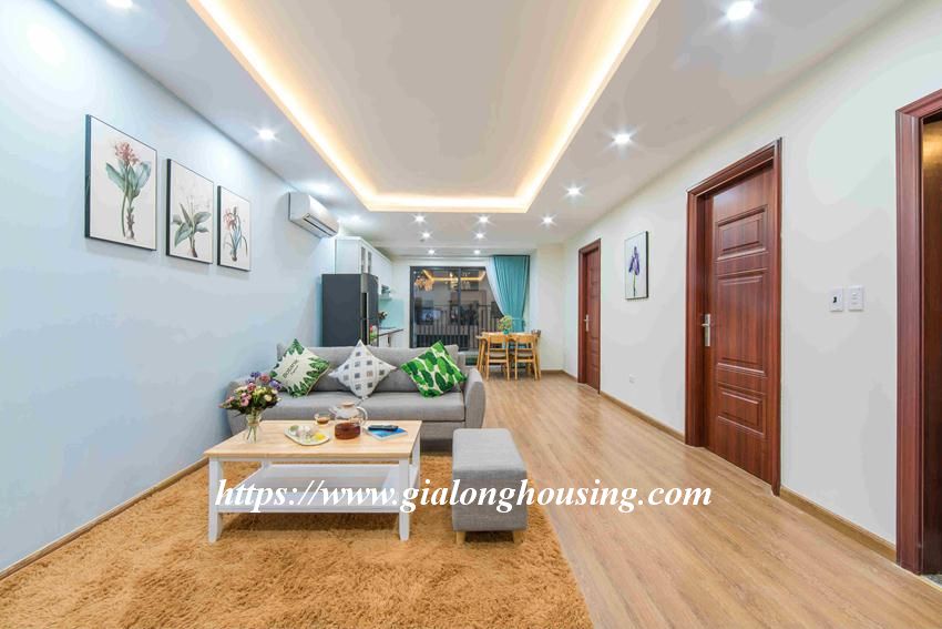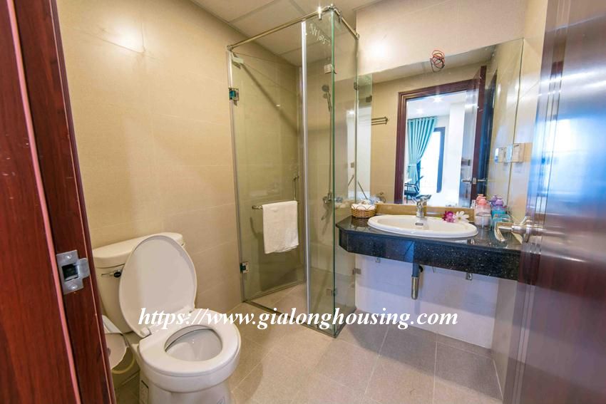 This brand new 2 bedroom apartment is located in Central Field building, 219 Trung Kinh, Cau Giay district. The total area is 75 sq m, 02 bedrooms and 02 bathrooms. The whole apartment is bright due to big glass windows.