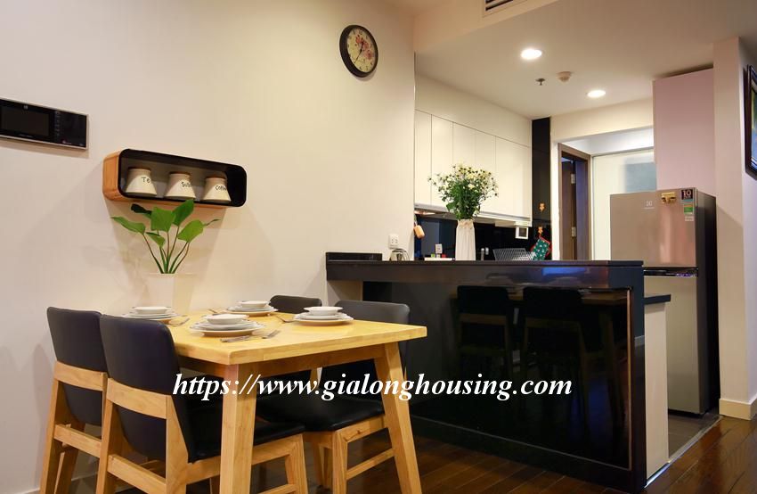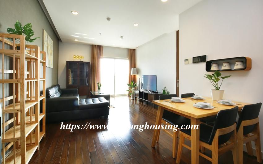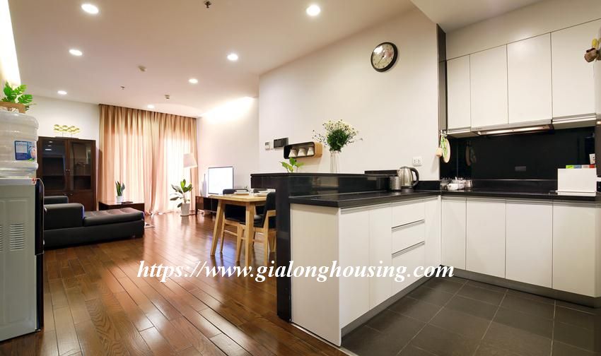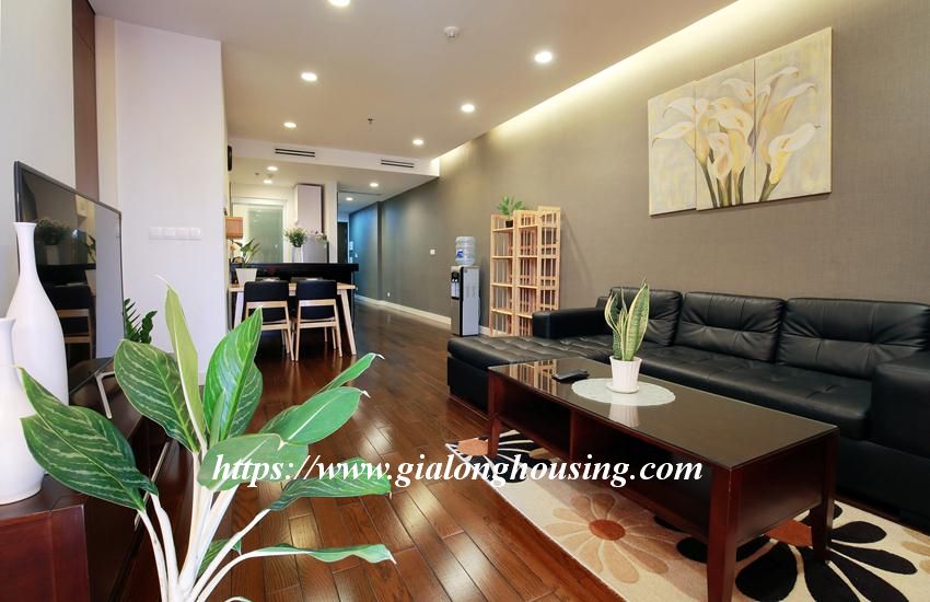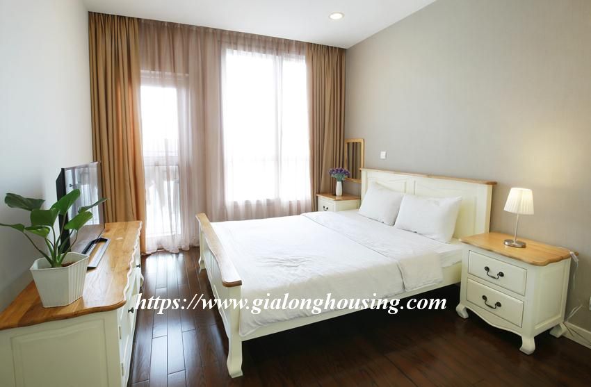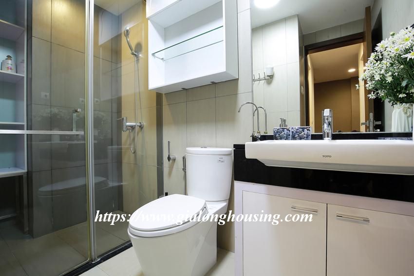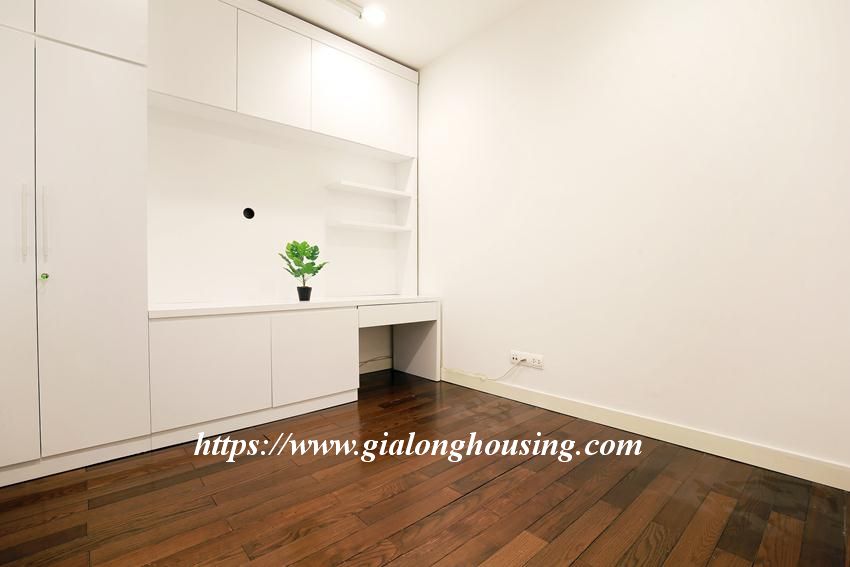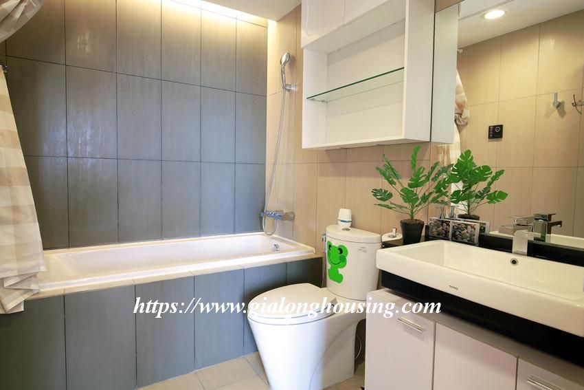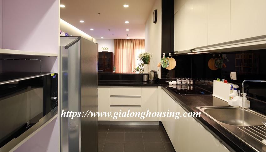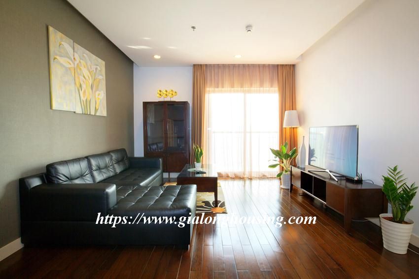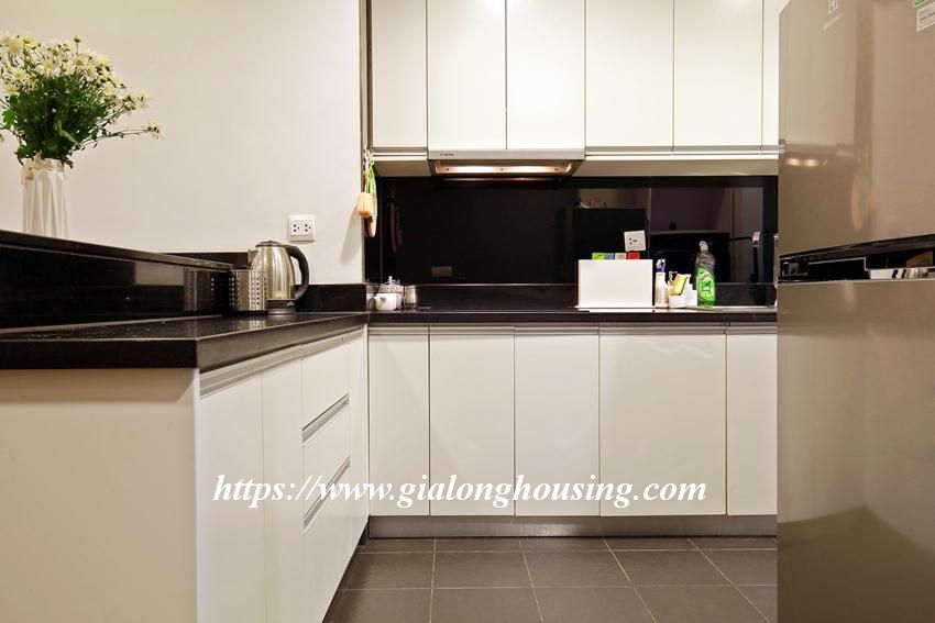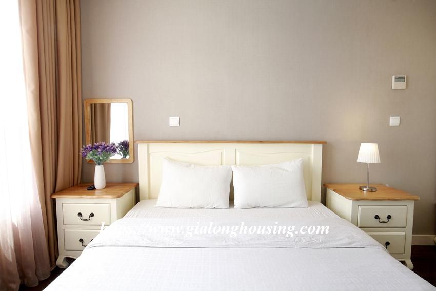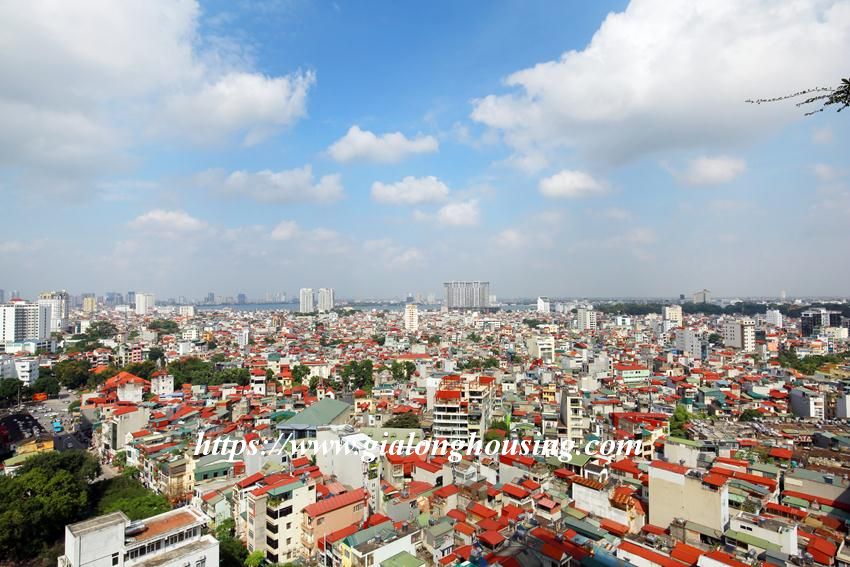 The bright apartment is located in high floor of Lancaster building, 20 Nui Truc. The apartment is spacious and clean with western style. From balcony, you can see a corner of Giang Vo lake and the surrounding areas. The living room and the open kitchen is combined, the master bedroom and the inside bathroom is cozy.