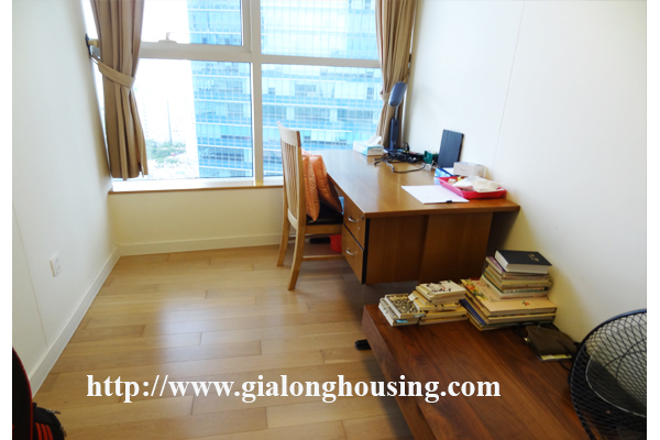 Luxury apartment for rent in Keangnam Hanoi. The construction area is 118 sq m, designed with 3 bedrooms, 2 bathrooms , living room and kitchen. It is well-equipped giving a feel of elegance and modern comforts, full modern furniture. Located in a straight way to Noi Bai Airport, the apartment has a nice view of the city, on a high 14 floor in tower B. The building has a swimming pool, gym, shopping center, restaurants, parking basement, reception and guards 24h. Net price : 1300 USD/month.
