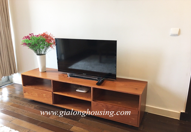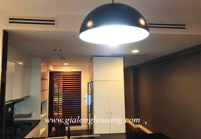 Lancaster Hanoi: 3 bedroom apartment rental, $1850/month The leasing apartment has living area of 130m2, designed with 3 bedrooms, 3 bathrooms. A modern living room is set up with comfortable sofa, LCD TV, dining table and chairs and open kitchen. It has full furnishings, timber floor, elegant decoration.