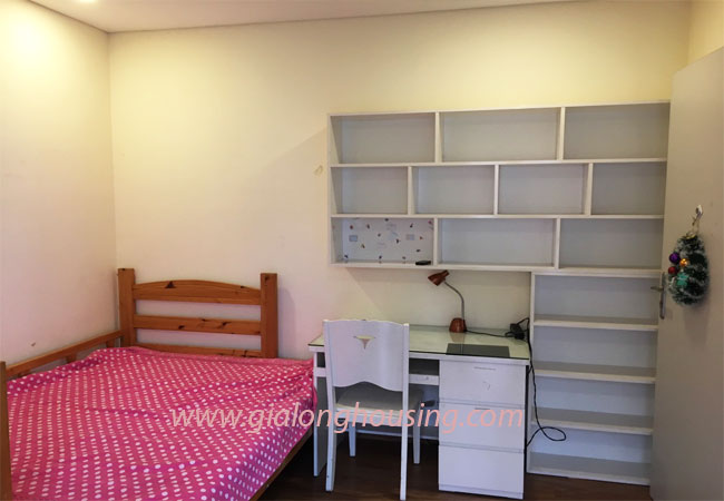 3 bedroom apartment in , Ngoai Giao Doan area, Hanoi. The apartment is 120m square, designed with 3 bedrooms, 2 bathrooms, living room, kitchen and dining area. It is furnished apartment with nice and quality furniture.