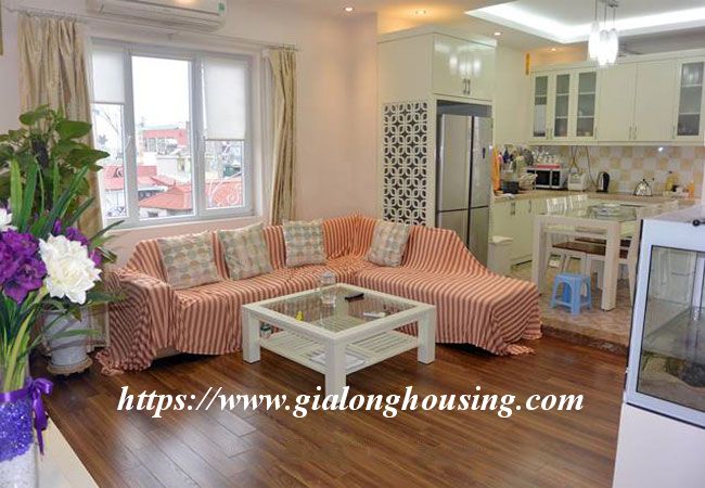 This nice apartment is located in high floor of the building in Van Cao, Ba Dinh district. The total area is 96 sq m, including 03 bedrooms and 02 bathrooms. The apartment is fully furnished so that the tenants can move in today. Please contact us for more detail.