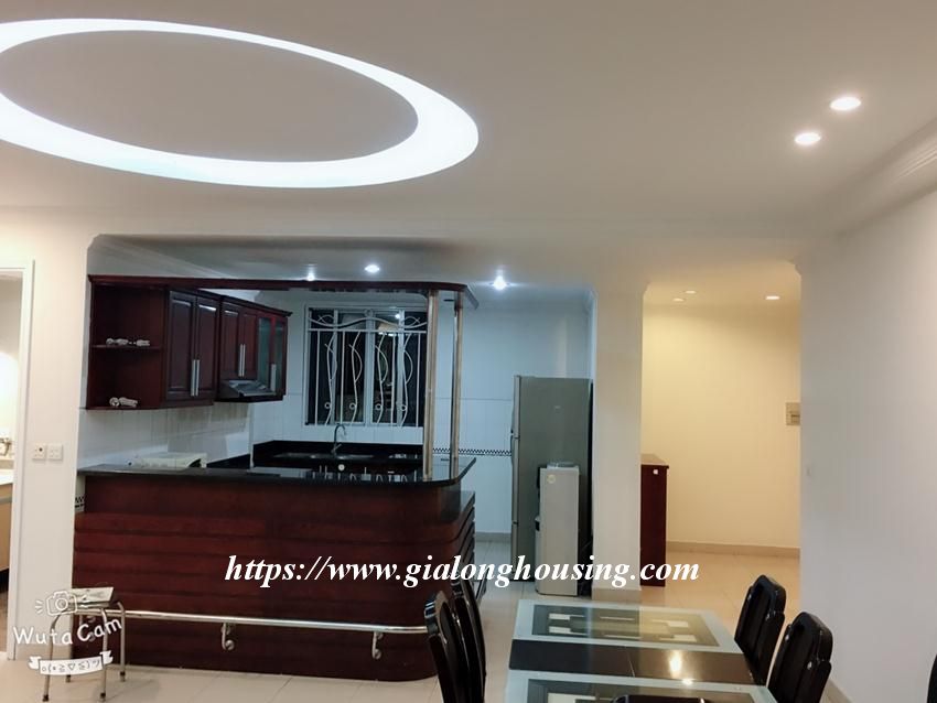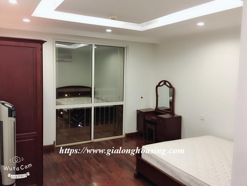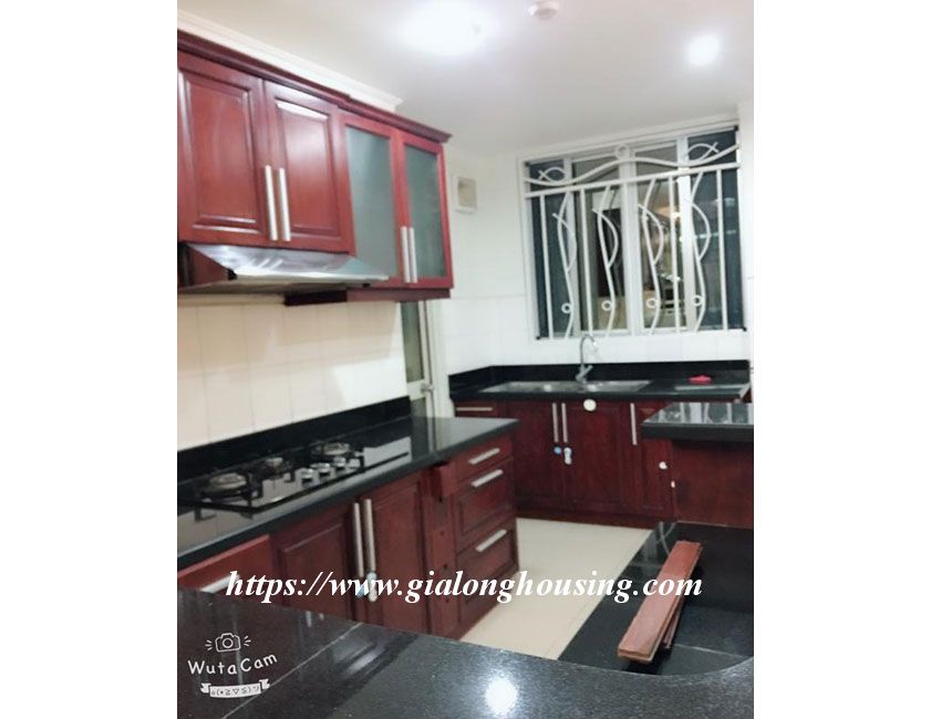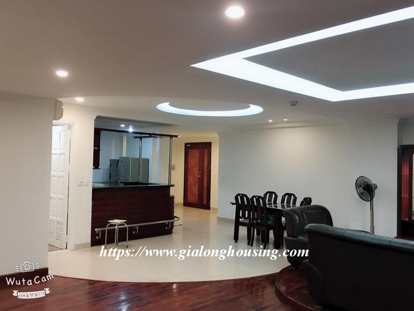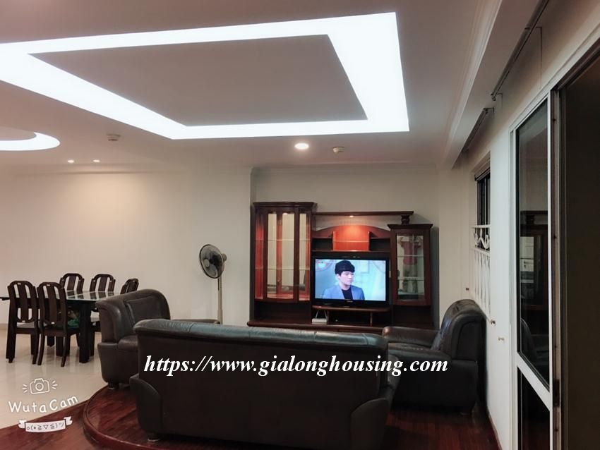 This big apartment is located in high floor of G building, Ciputra urban area, Tay Ho district. The total area is 150 sq m, 03 bedrooms and 02 bathrooms. The living room and the kitchen is facing to the West lake. The building has swimming pool, gym and security 24/24.