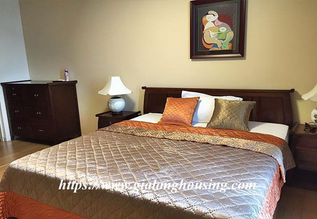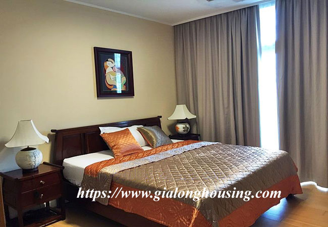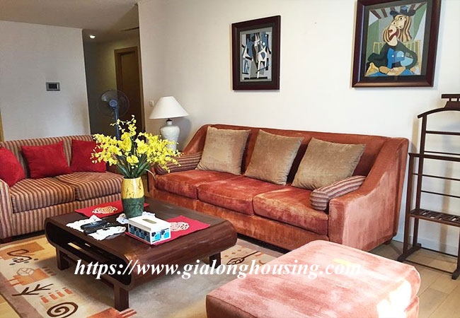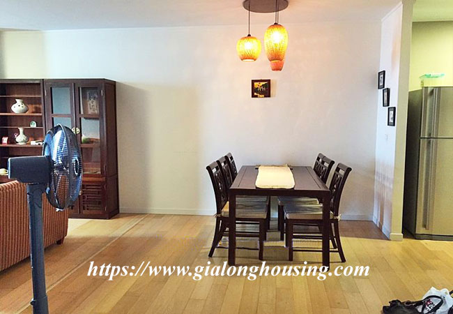 This apartment is fully furnished and the tenants can move in immediately. The total area is 126 sq m, including 03 bedrooms and 02 bathrooms. One bedroom was changed into a working room. The whole apartment is bright and nice due to a lot of natural light and fresh air from balconies and windows.