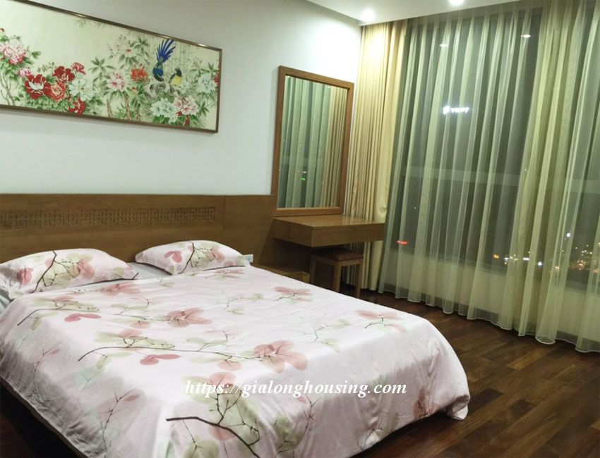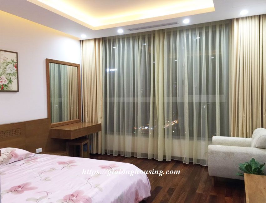 This 3 bedroom apartment is located high floor of Vinhomes building, 54 Nguyen Chi Thanh. The total area is 128 sq m, 03 bedrooms and 02 bathrooms, suitable for long term contract. The apartment is fully furnished and ready for the tenants to move in immediately. The building has free indoor swimming pool, free building management fee. It also has cinema, supermarket, restaurants and coffee shops.