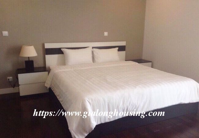 The total area of this beautiful apartment is 126 sq m with 03 bedrooms and 03 bathrooms. It is fully furnished with high quality furniture and equipment. From the balcony you can see the city. The building has good services: public room for all residents, swimming pool, restaurants. The building is located in a very convenient place in city center.