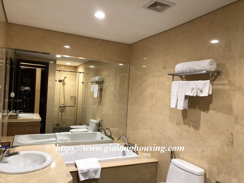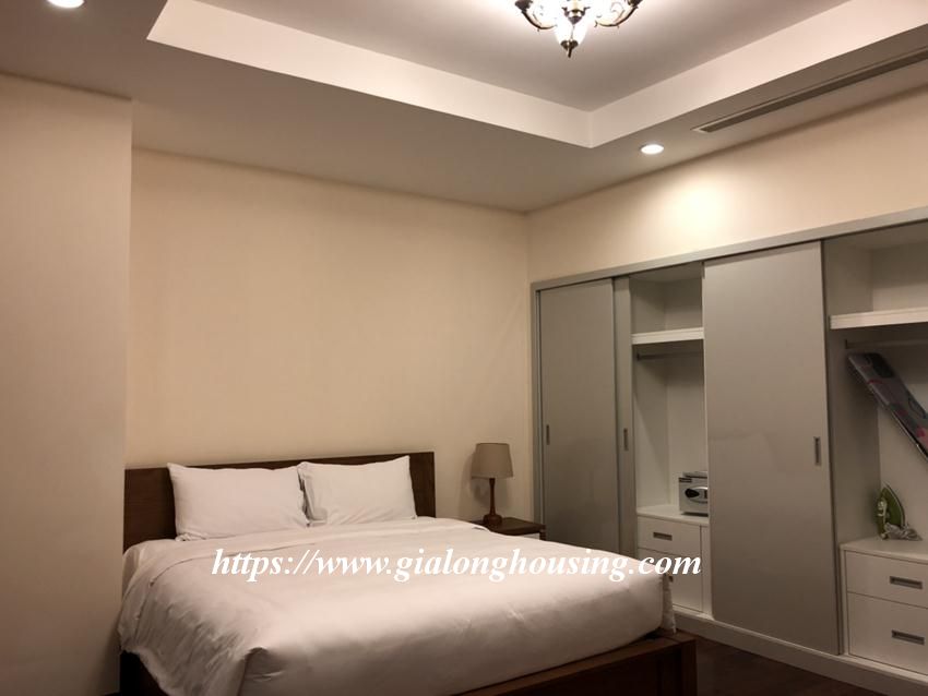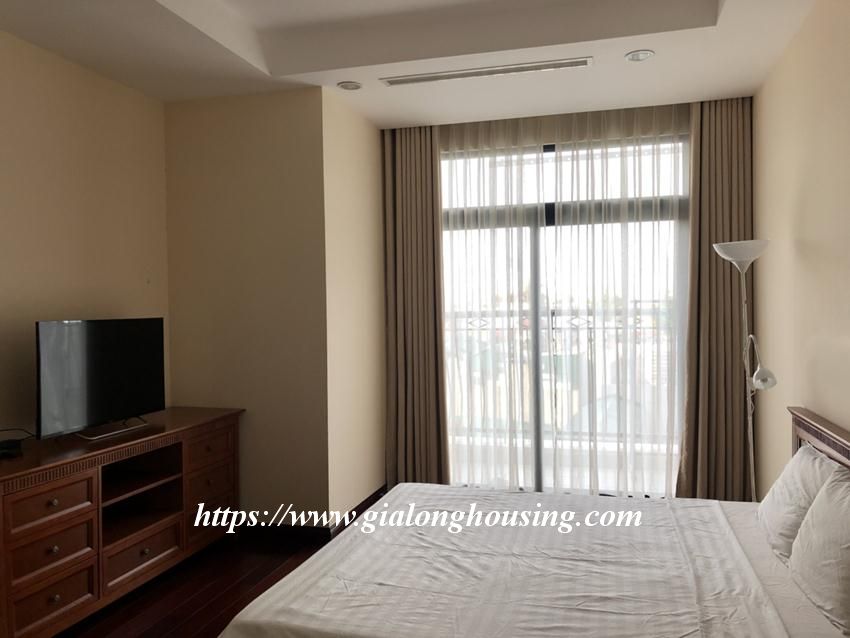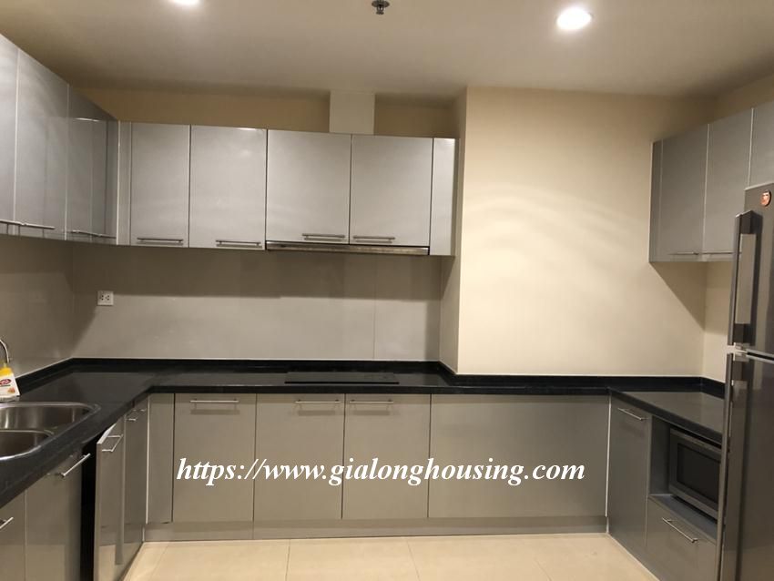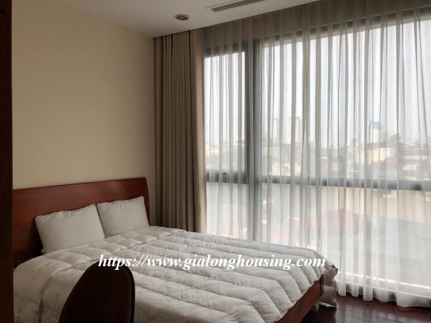 This 3 bedroom apartment is located in R4 building, Royal City, 72 Nguyen Trai, Thanh Xuan district. The total area is 137 sq m, 03 bedrooms and 02 bathrooms with bathtub. The apartment is fully furnished with modern style. The building has indoor and outdoor swimming pool, playground for kids, underground shopping center.