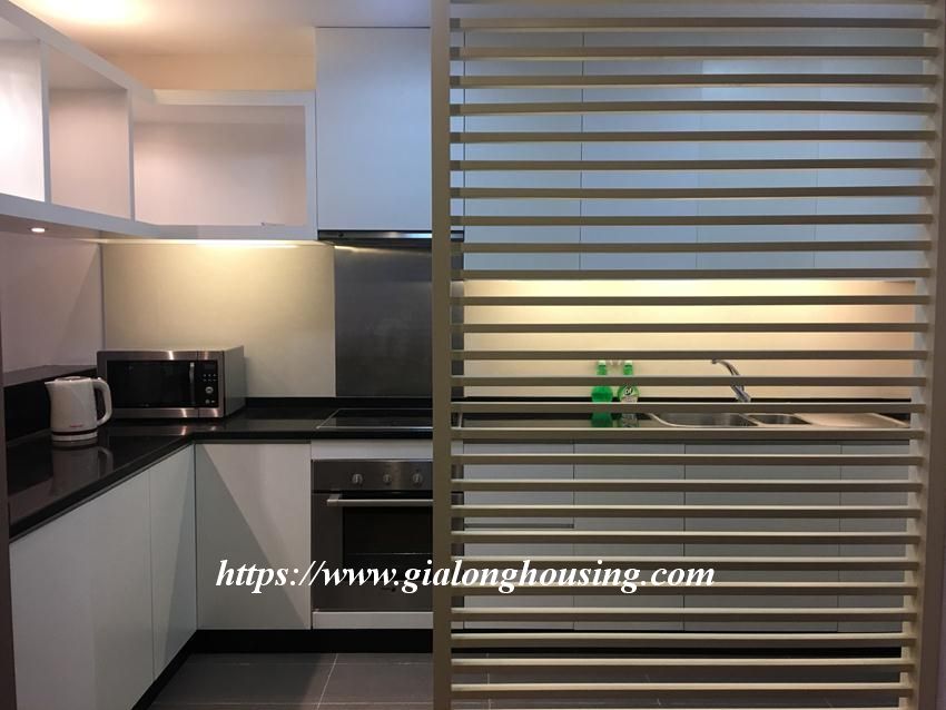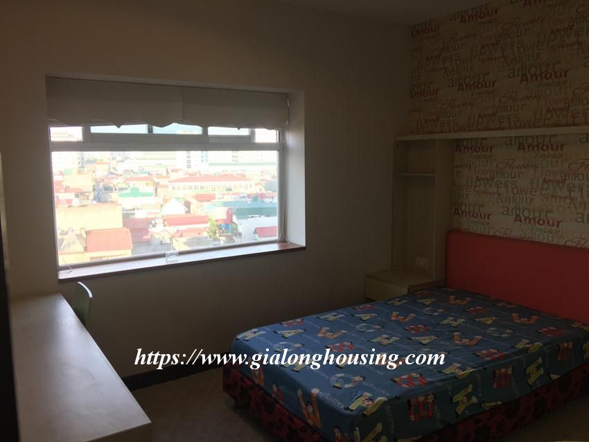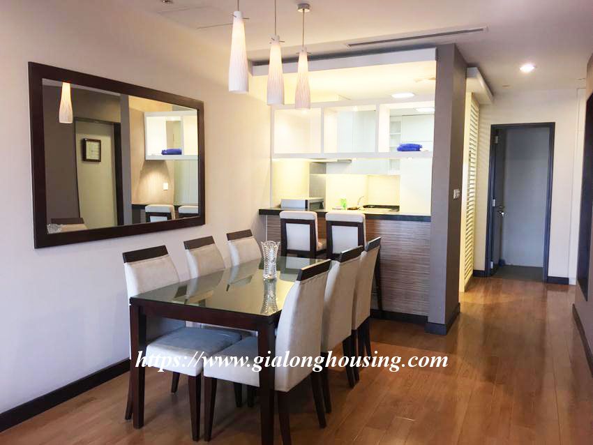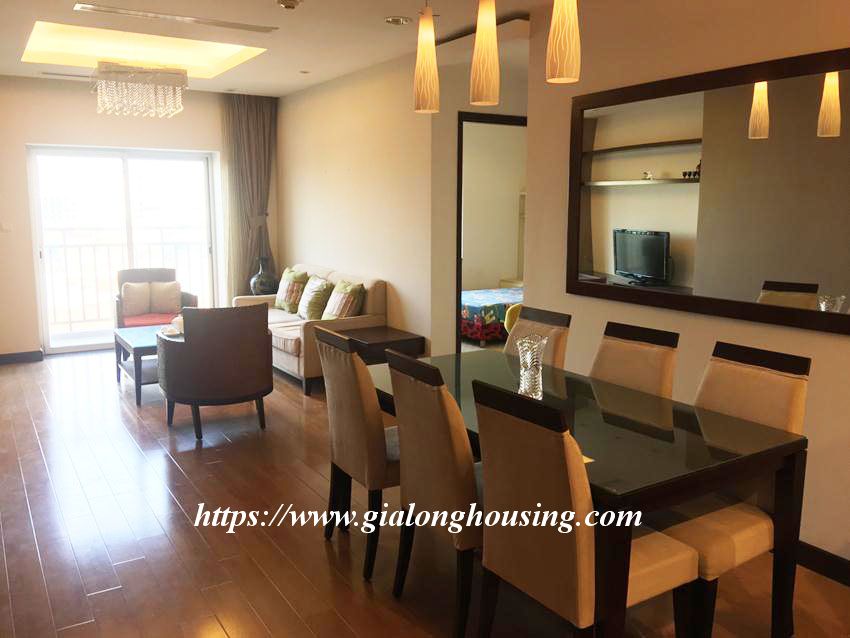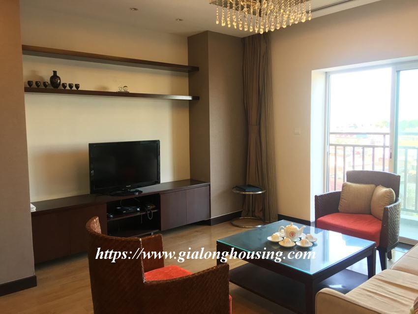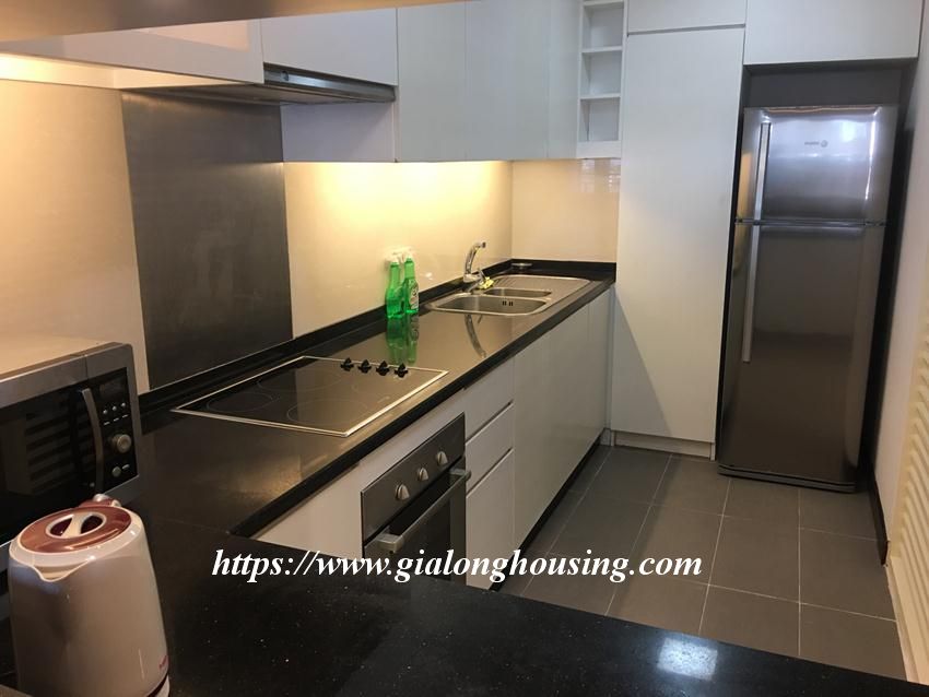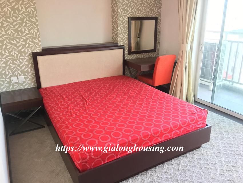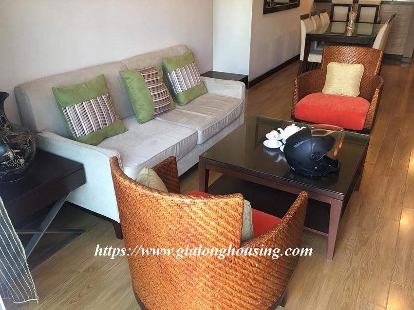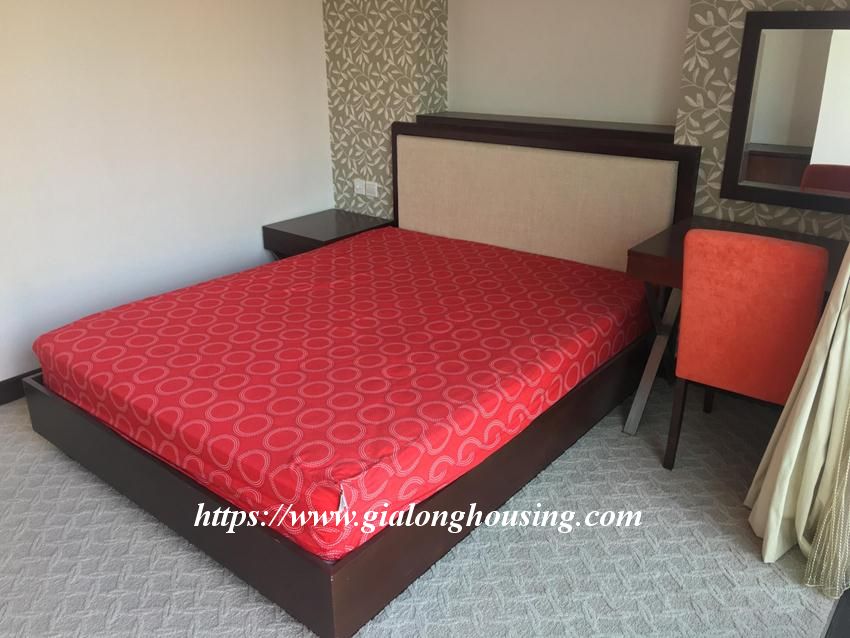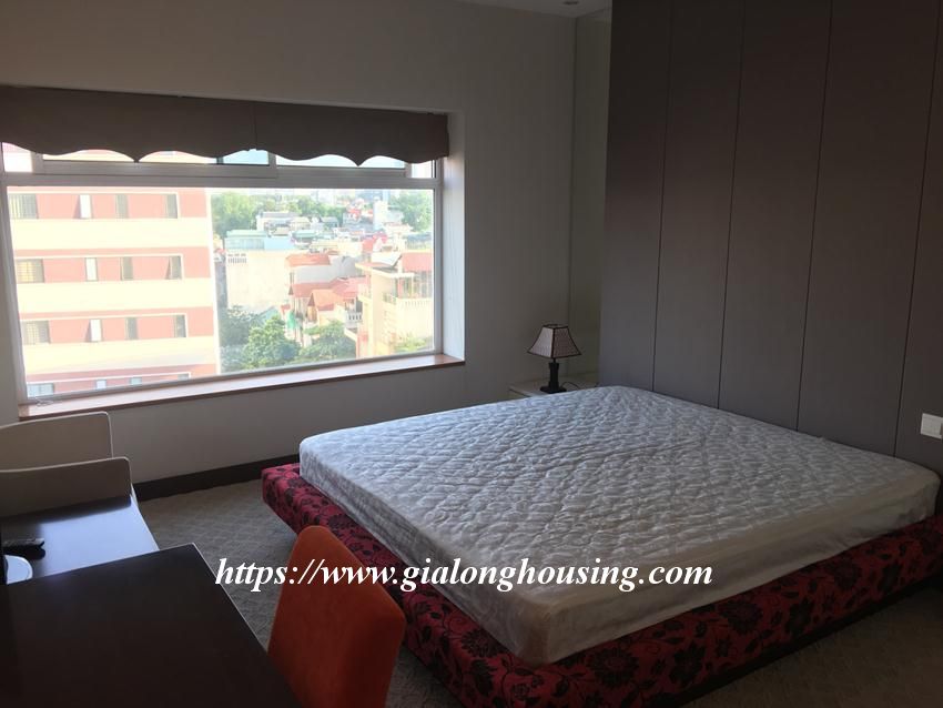 This fully furnished apartment is located in high floor of Hoa Binh Green building, 376 Buoi street. The total area is 127 sq m, 03 bedrooms and 02 bathrooms. The apartment has lot of natural light from balcony and windows. The building has security, reception, indoor swimming pool and gym.