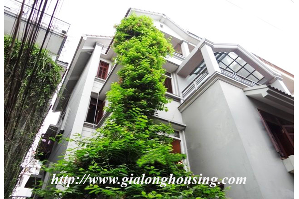 A nice house for rent in Au Co street, Tay Ho, Westlake, Hanoi. It is very close to the lake. It has direct car access and car parking inside the house. The first floor has a small courtyard, a living room, a kitchen and dining area. The 2nd floor has a nice family room, a bedroom and 2 bathrooms. There are 2 bedrooms, a bathroom on the 3rd floor. The top floor has an office, a washing room, store room and a beautiful open terrace viewing to the lake.
