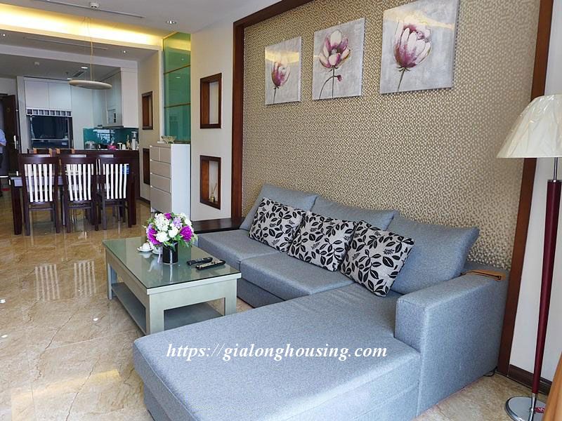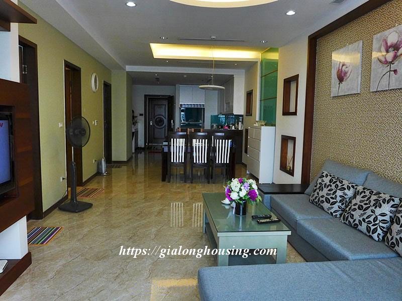 This is a nice and bright apartment located in high floor of Royal City building. The total area is 109 sq m, including 03 bedrooms and 02 bathrooms. The whole apartment is bright due to big glass windows and balcony. The big apartment will be big enough for a family or a group of friends to stay in long term.