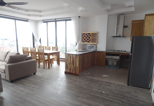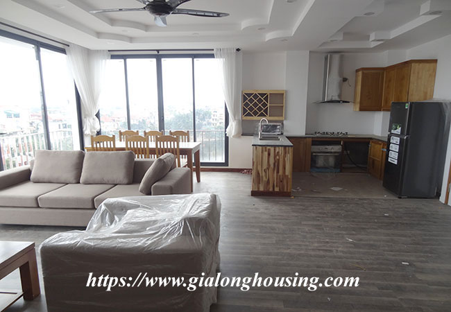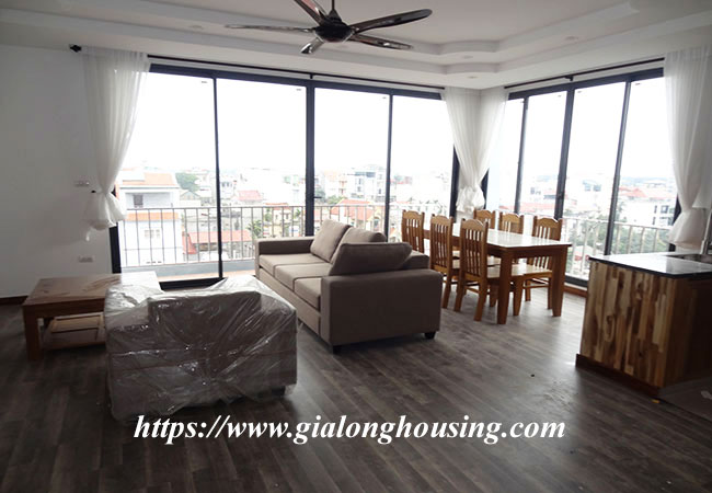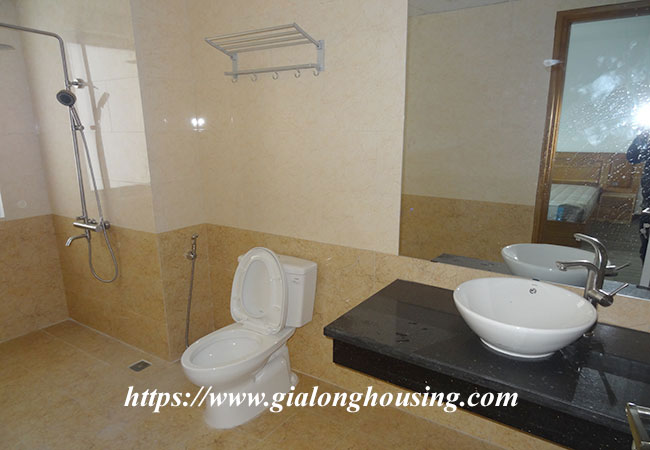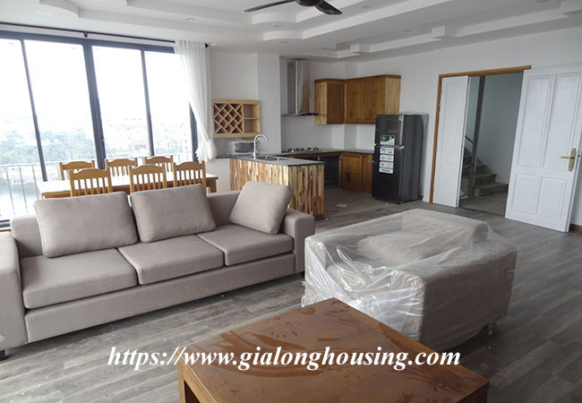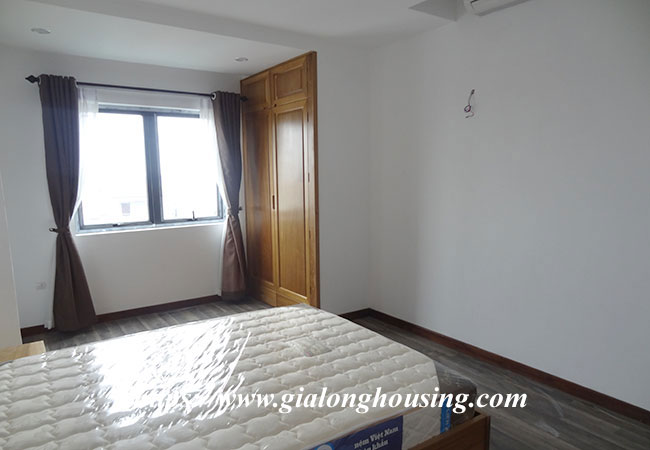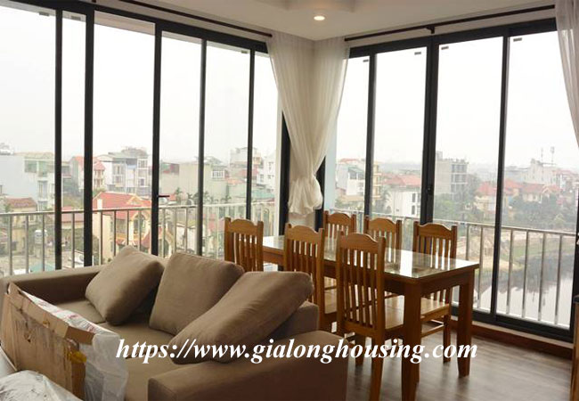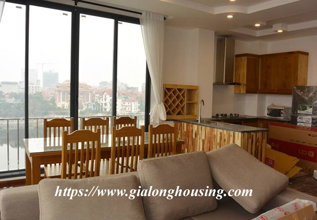 The brand new building offers 03 bedroom apartment at very reasonable price. The total area of this furnished apartment is 120 sq m. The whole rooms is bright, from the large glass windows, you can see the small lake as well as West lake. The big balcony will be the best place for you to see the scenery, sunbathe, read books.