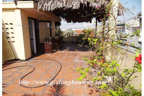 A nice house for rent in Nghi Tam village,Tay Ho district .This house has a large courtyard, nice plants, a beautiful and spacious roof top terrace. 03 storey-house composed of a living room, dining room and a good kitchen with oven and refrigerator.