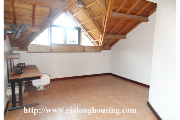 House for rent in Tay Ho district. This is a nice house with a small yard, the land is 120 sqm, the construction is 90 sqm x 4 floors. There are 4 bedrooms, 5 bathrooms with bathtub. there is a roof top room which can be used as a guest room or storage. Living room and open kitchen are on the first floor and the big terrace is very suitable for parties or BBQ. The house is well-designed.Now this house with unfurnished but the landlord can provide full furnished and equipped. The location is good, quiet and secure.