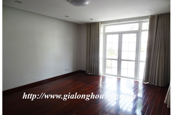 Spacious villa for rent rent in Ciputra, Hanoi. The construction area is 330 sqm consisting of 5 bedrooms, 4 bathrooms, large living room and modern kitchen. The villa has large garden, courtyard and side walk, the villa is located in block T, quiet and clean neighborhood, near Park, easy access to club house and shops.Nice timber floor, all rooms with air-cons, windows, some balconies.