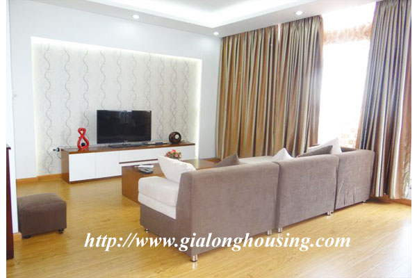 This is a very bright and nice apartment with high quality furniture. The total area is 110 sq m with 01 bathroom and 02 bedrooms. It is located near Giang Vo exhibition, Giang Vo lake. It is easy access, secure location, easy traffic and walking distance to the cafes, supermarket nearby.