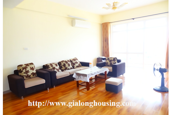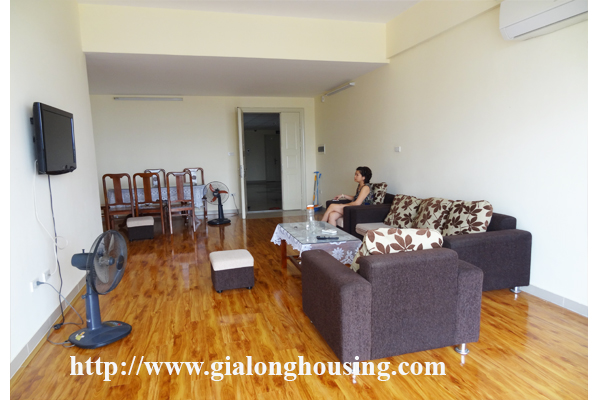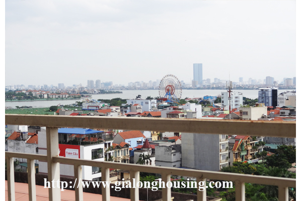 Apartment is at 10th floor with West lake view. From window and balcony, you can see the lake and Nhat Tan bridge. The total area is 120 sq m with 03 bedrooms and 02 bathrooms, suitable for all members in your family or friend sharing room. Located in Lac Long Quan street, it is provided full of high quality services such as: security, peaceful surroundings, minisupermarket.