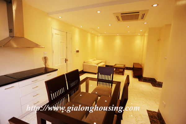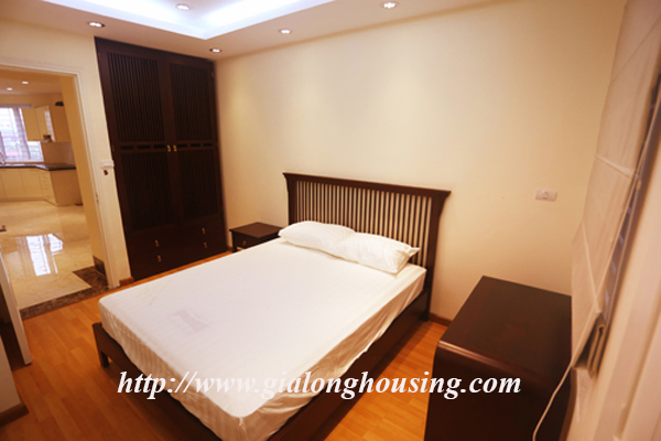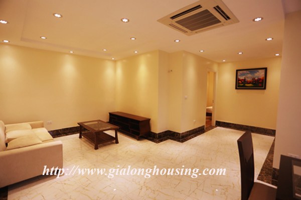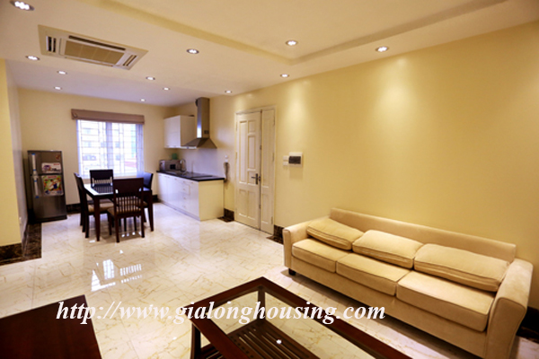 A nice serviced apartment for rent in Hao Nam street, Dong Da, Ha Noi.Apartment has size is 95 sqm including 2 bedrooms, 2 bathrooms, equipped kitchen with dish-washer, microwave, gas cooking stove, a spacious living room. It is fully furnished. The rent is included internet, cable tv, water and 24h security, cleaning service.