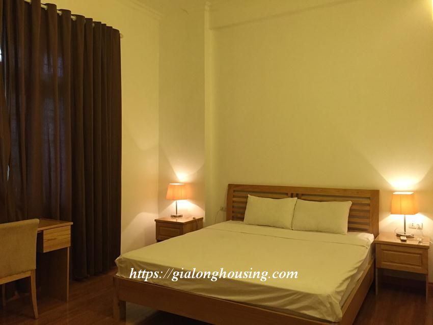 The apartment is right next to Ngoc Khanh lake with amazing view from the balcony. The total area is 100 sq m, 02 bedrooms and 01 bathroom with bathtub. The apartment is available for you to stay in long term with high quality services: high speed internet, cable TV, tap water and cleaning service.