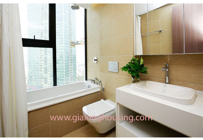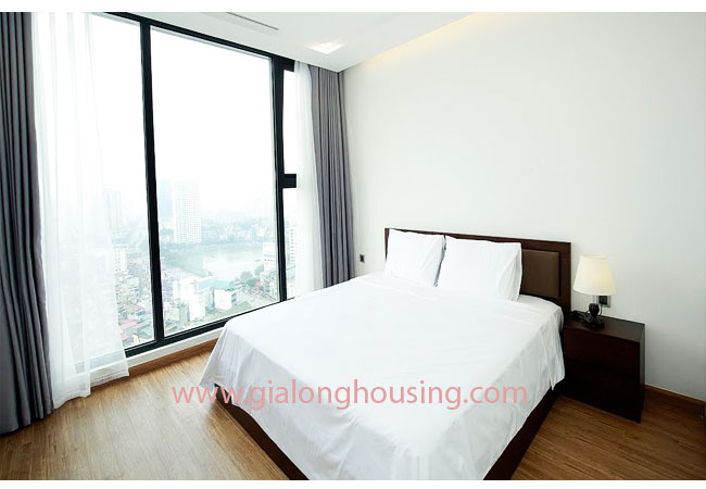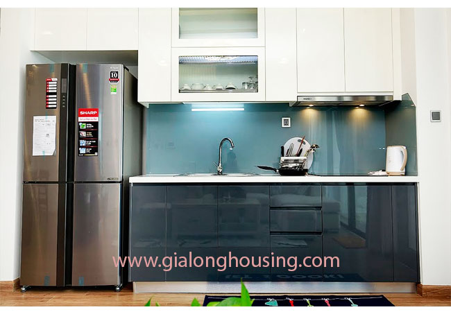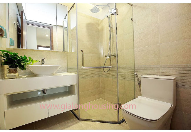 03 bedroom apartment for rent in Vinhomes Metropolis . Size of apartment is 145 sqm with a large living room, an open kitchen combined with dining area, 02 bathrooms. It’s fully furnished, fully covered with wooden floor.The living room of this apartment is modern with an L-shape sofa, an ideal corner for a family to stay together after dinner. The kitchen is provided with full cooking