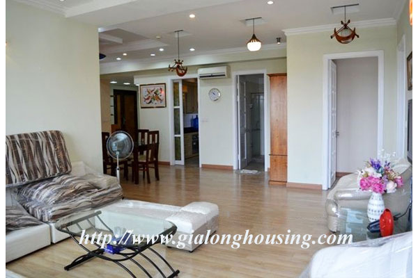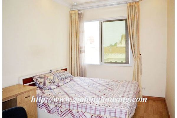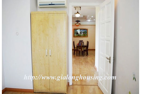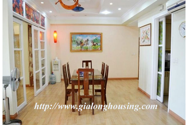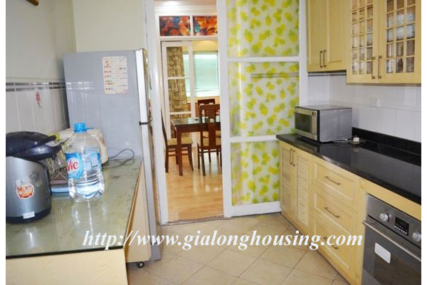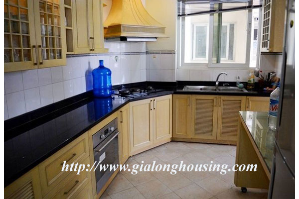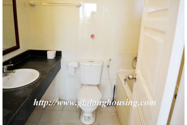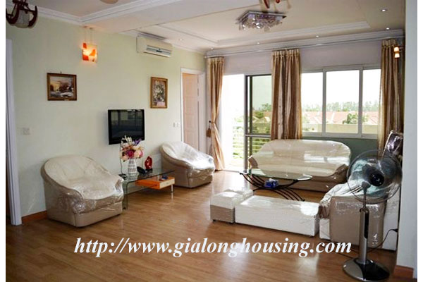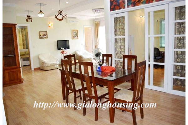 This is a large apartment in E building, near Hanoi Academy school. The total area is 153 sqm with 03 bedrooms and 01 working room, 02 bathrooms. The flat is very suitable for a family or a group of friends who want to stay in a long term. The apartment has full furniture and equipment, so the tenants can move in immediately.