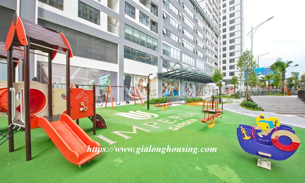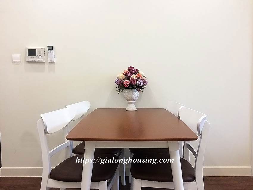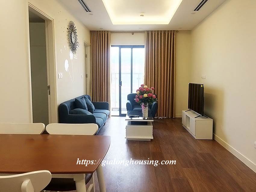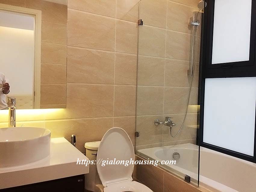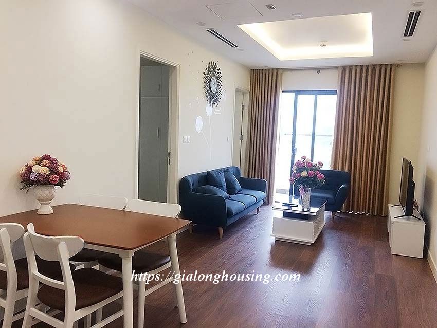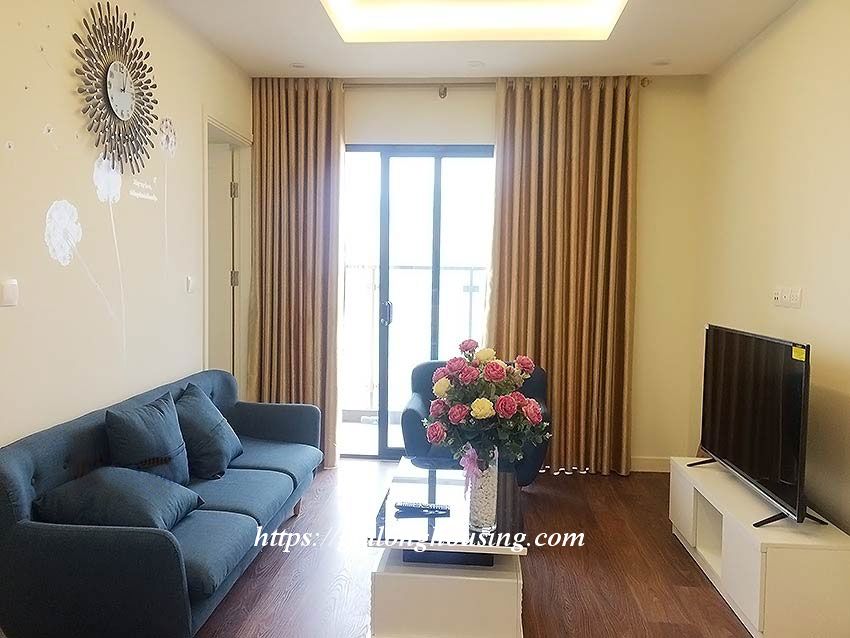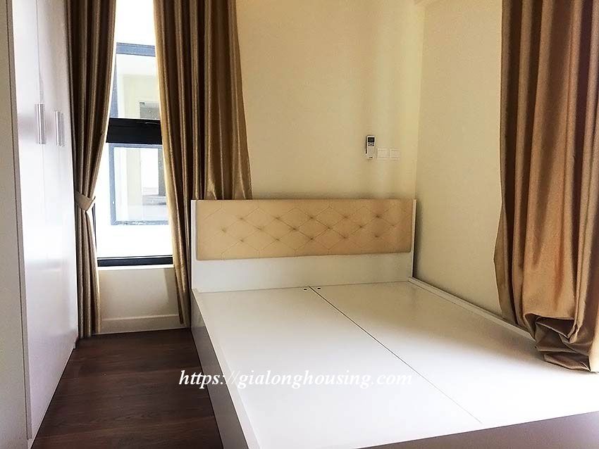 Apartment for rent at Imperia Garden building, 203 Nguyen Huy Tuong, Thanh Xuan district. Area: 76 sq m, 2 bright bedrooms, 2 bathrooms, 1 living room, 1 kitchen, 1 balcony, city view. Wooden floor. Fully furnished: air conditioners, internet connection, cable television, parking area, 24/24 security, elevator.