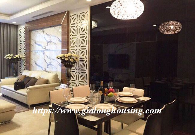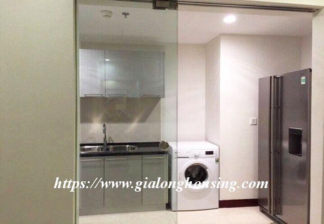 This beautiful apartment is located in the middle floor of R3 building, Royal City urban area, 72 Nguyen Trai, Thanh Xuan district. The contemporary design gives you the home feeling. The total area is 109 sq m, 02 bedrooms and 02 bathroom. The kitchen and the living room is combined in a modern style. The tenants enjoy the Asia biggest shopping center, cinema, four season swimming pool.