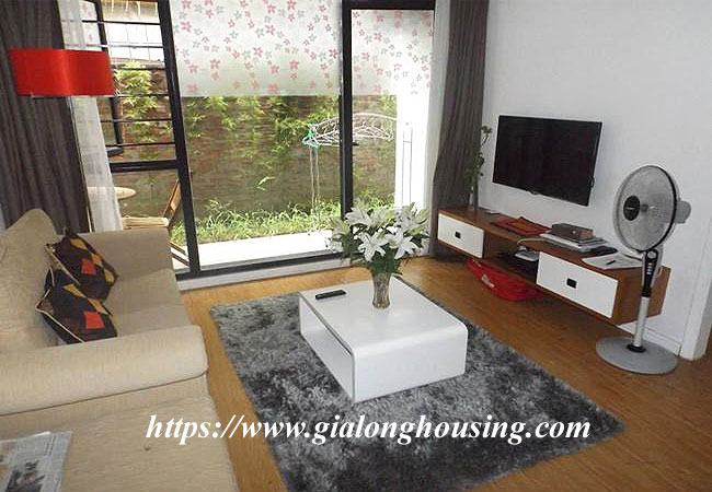 This apartment is located at ground floor of the building with small courtyard for reading booking, sunbathing in the warm sunlight. The total area of the flat is 55 sq m, 01 bedroom and 01 bathroom. The whole apartment is bright due to the large glass windows. The rent is included cable Tv, wireless internet, tap water and cleaning service 03 times/week.