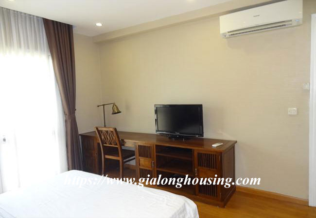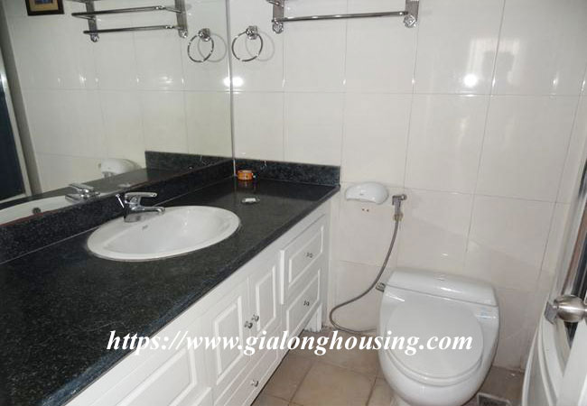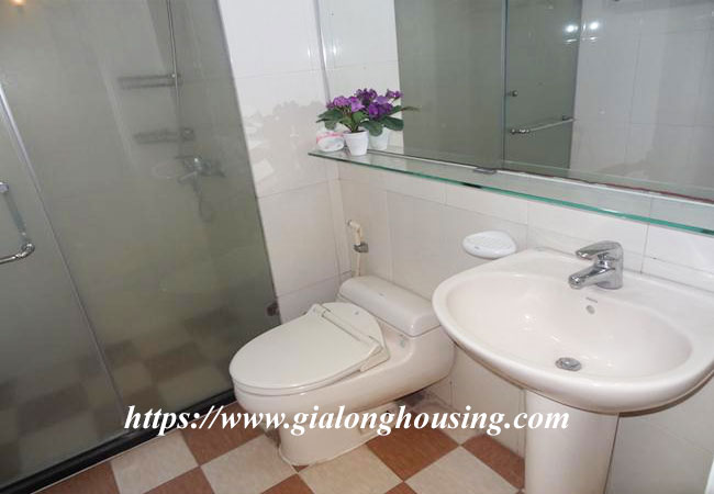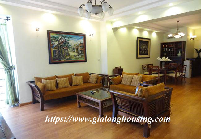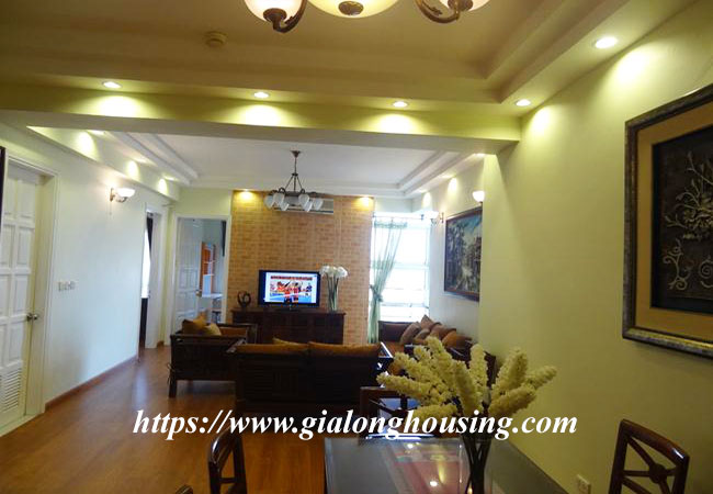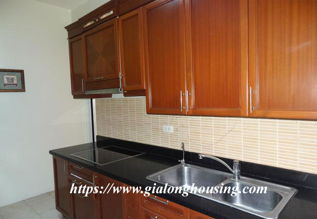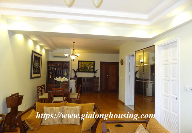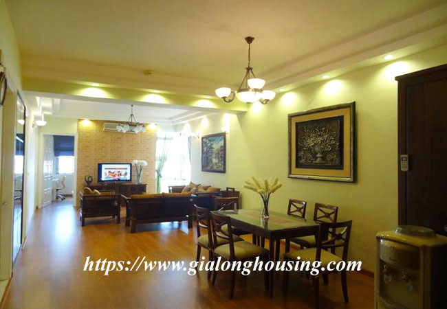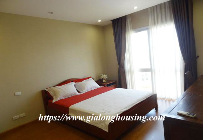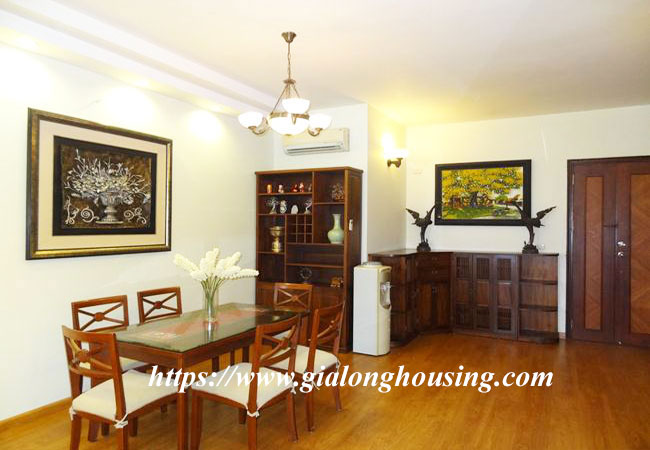 This beautiful 3 bedroom apartment is located in G building, Ciputra urban area, Tay Ho district. The total area is 120 sq m, including 03 bedrooms and 02 bathroom. The big living room is combined with dining area and a modern kitchen. All furniture and equipment are modern, suitable for long term staying. The building has swimming pool, security, car parking, good environment.
