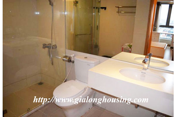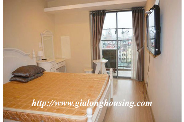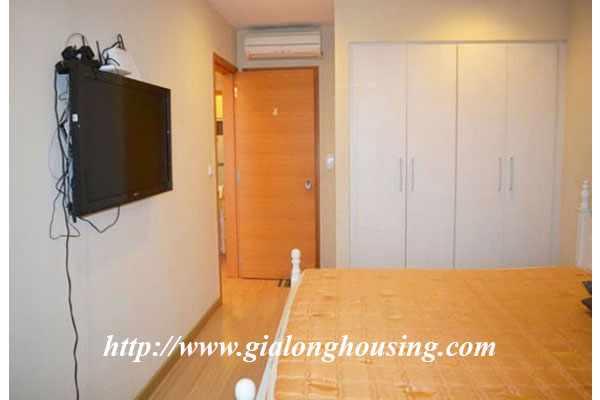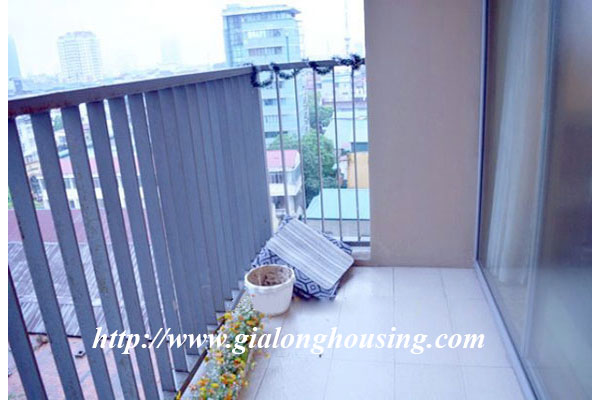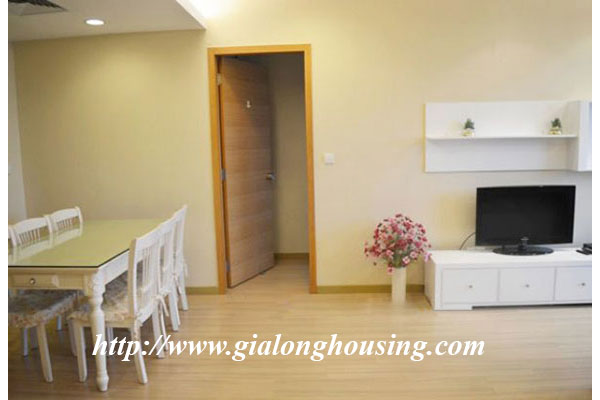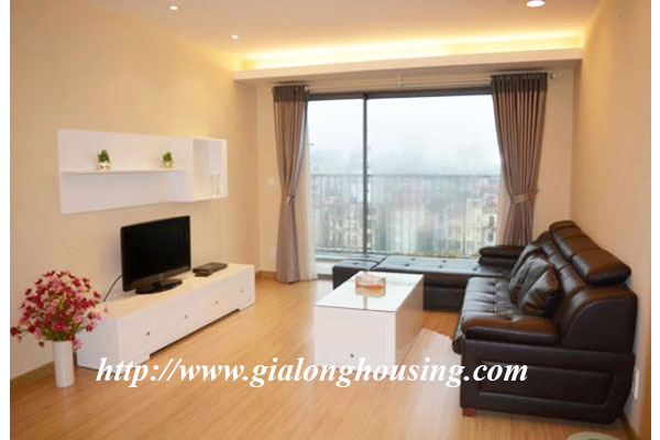 This is a very bright and nice apartment located in Sky City, 88 Lang Ha, Dong Da district, Hanoi. The total area is 101 sq m with 02 bedrooms and 02 bathrooms. The whole apartment is bright due to big glass windows and balcony. The apartment is fully furnished and the tenants can move in soon. The building has security, car parking, gym and swimming pool.
