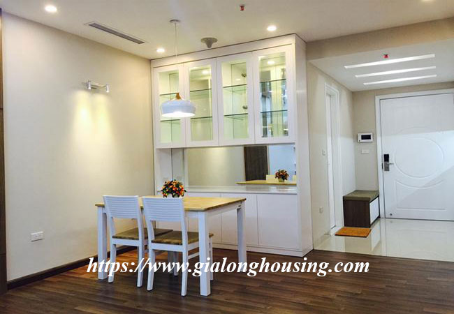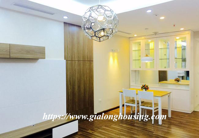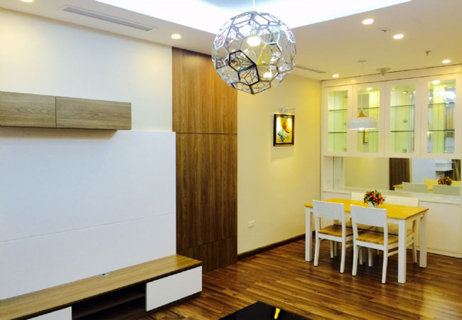Located in high floor of Vinhomes Nguyen CHi Thanh building - one of the newest and most modern buildings in Hanoi, this apartment can meet all your requirement for a sweet home. The total area is 86 sq m, including 02 bedrooms, 02 bathrooms. The living room and the kitchen is combined by a dining area. All the rooms are bright and spacious. The apartment is fully furnished.
