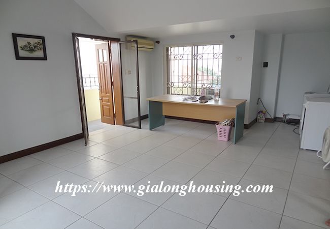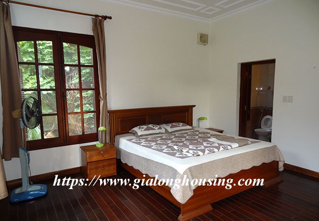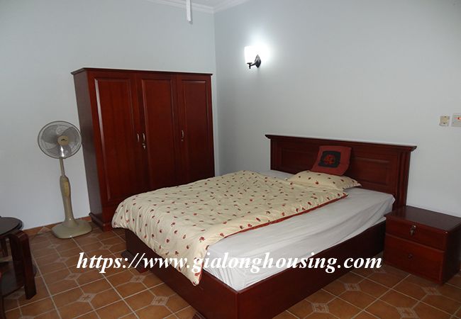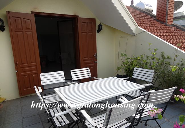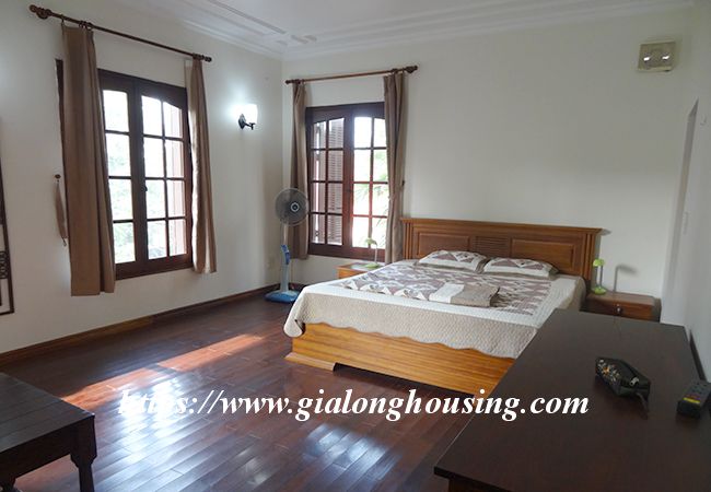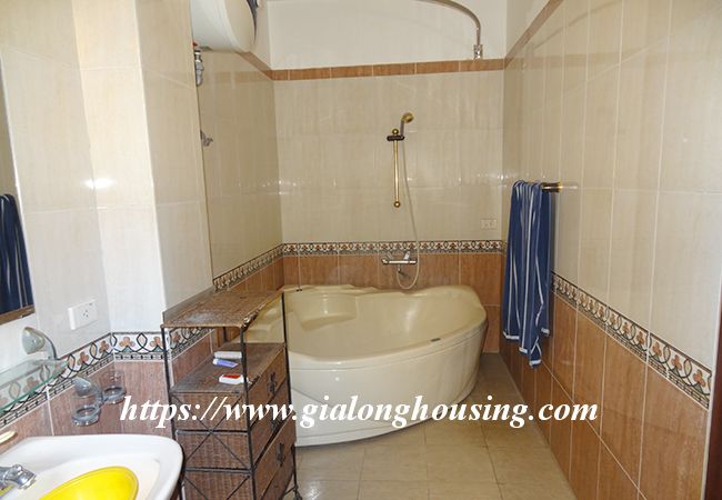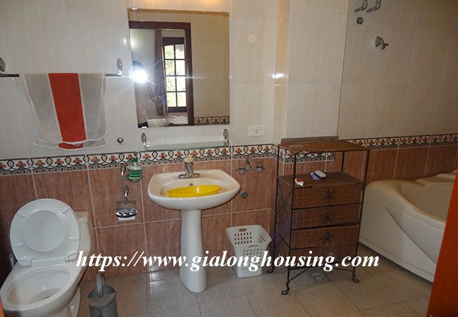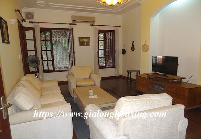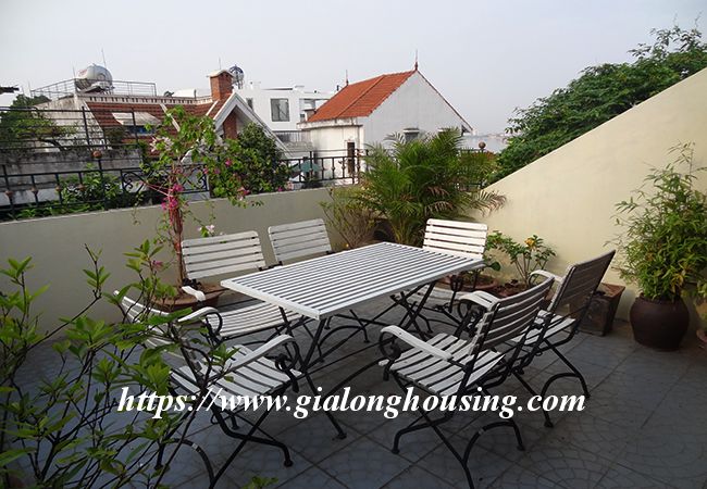 This beautiful garden house is located in Vong Thi, not far from West lake and Lac Long Quan street. The house has a large and green garden that brings the fresh air and cool wind into the rooms. The land area is 200 sq m, the construction area is 120 sq m. It has a big garage for car parking. The house has 03 bedrooms and 04 bathrooms, all are fully furnished so that the tenants don't need to buy any furniture or equipment. From the rooftop, you can see the corner of West lake.