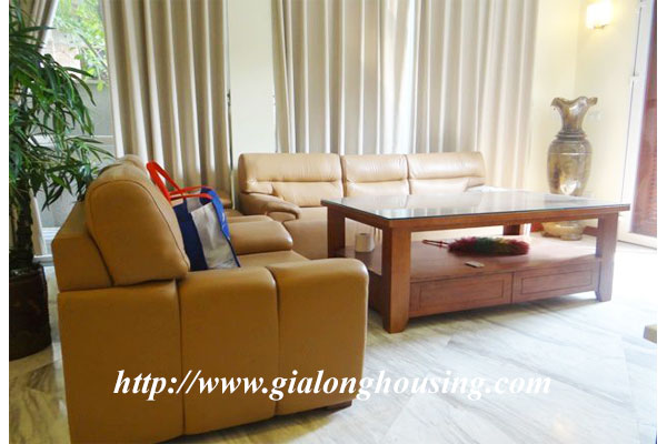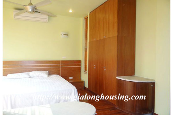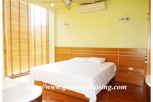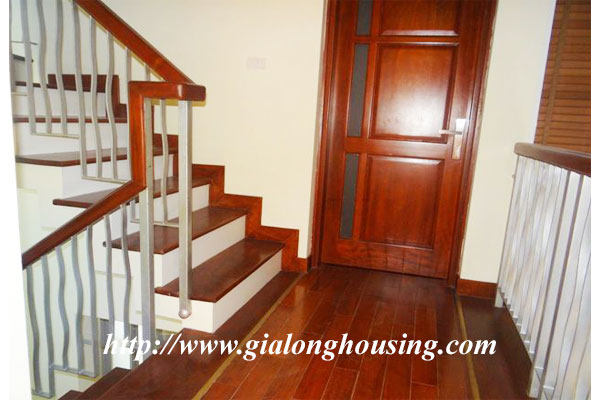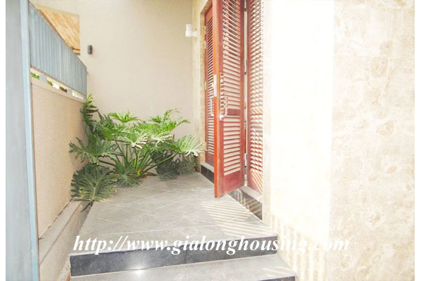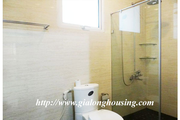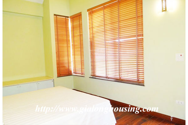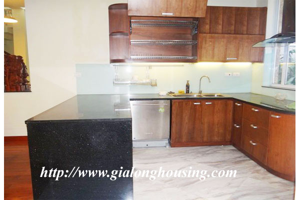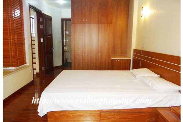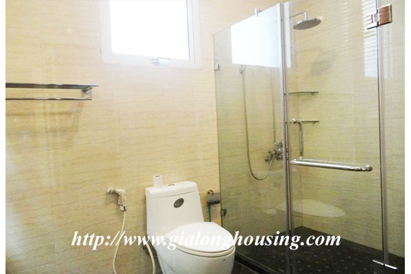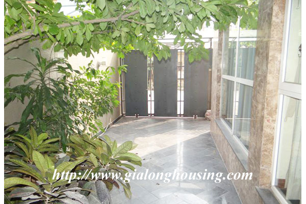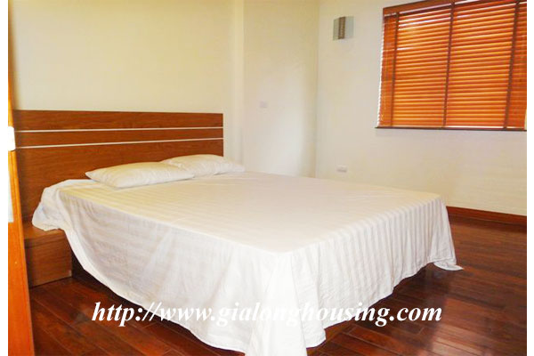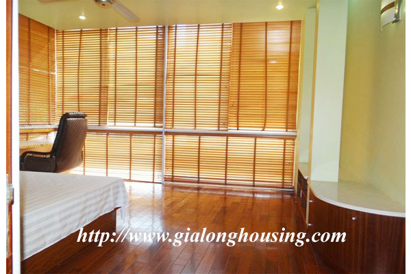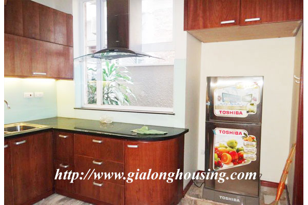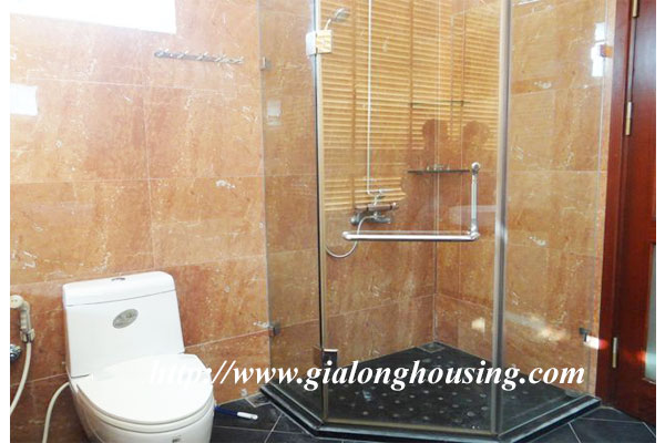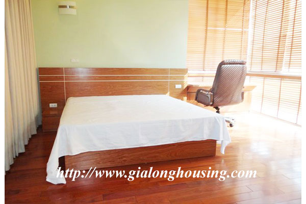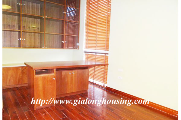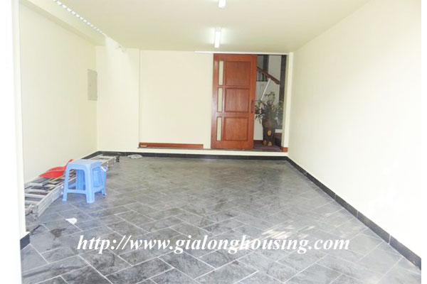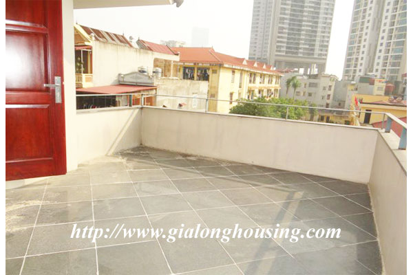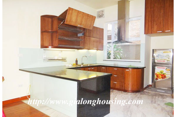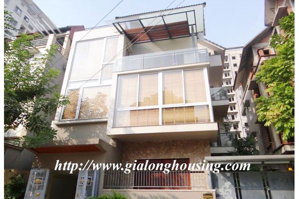 This rental house is located in a quiet street of Cau Giay District, Hanoi. It is 4 floor house, new and good quality. Very modern style, bright. The 1st floor has a big living room, open kitchen with dishwasher, dining table, bathroom, a garage for car and outdoor space. On the 2nd floor, there are 2 bedrooms with beds, built-in wardrobe, lot of cabinets and 2 bathrooms with nice showers. On the 3rd floor, it has 2 bedrooms, a bathroom and balcony. A bedroom, a washing room, store room, a terrace on the top floor. The house is close to Indochina Plaza, Hanoi University, Concordia Internation school. 10 minutes to Keangnam
