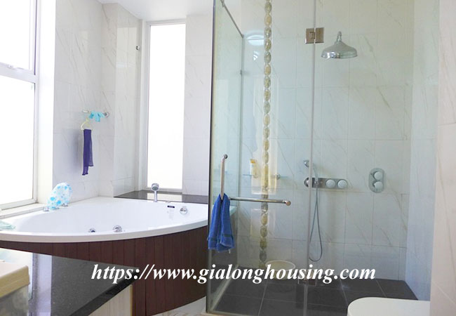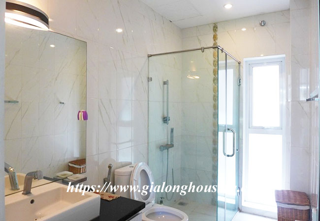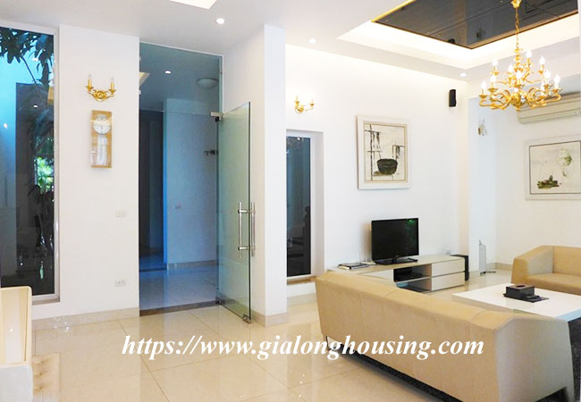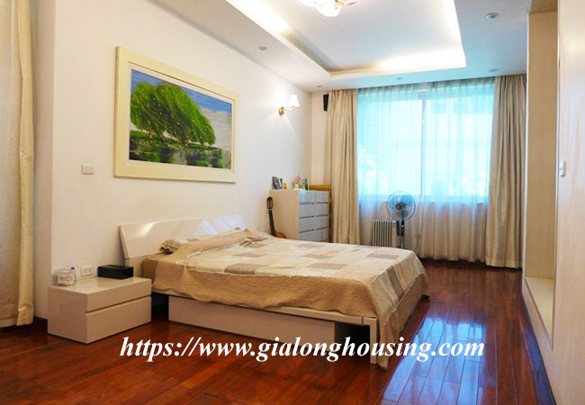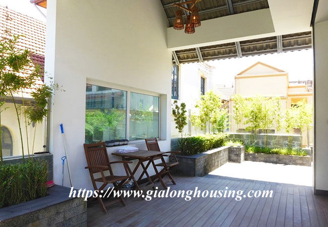 This beautiful house is located in a quiet lane of Tay Ho road, Tay Ho district, Hanoi. The big house has 120 sq m, the construction area is 100 sq m x 3 floors. All the rooms are bright and nice due to the unique design. The house is full furnished and the tenants can move in immediately. There are 03 bedrooms and 03 bathrooms, suitable for family or a group of friends.