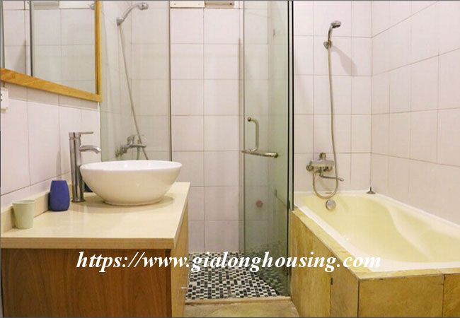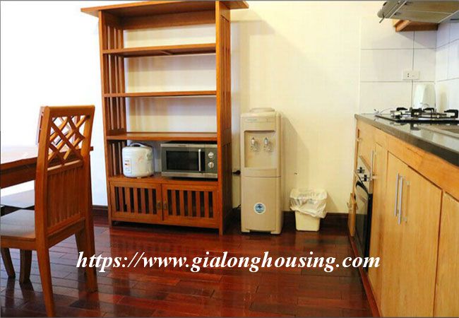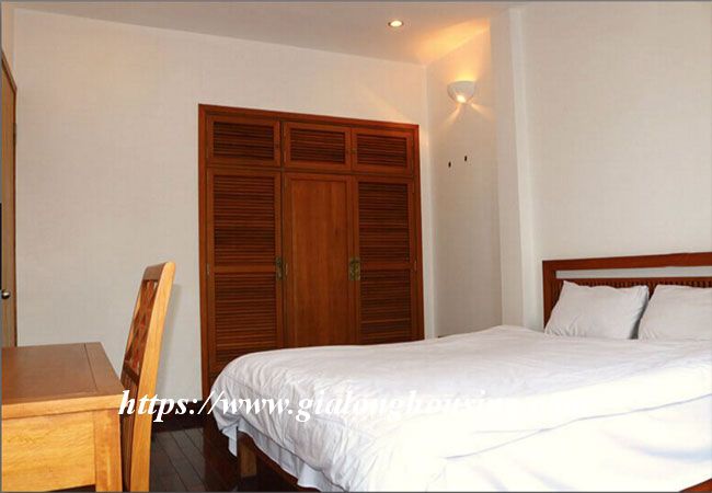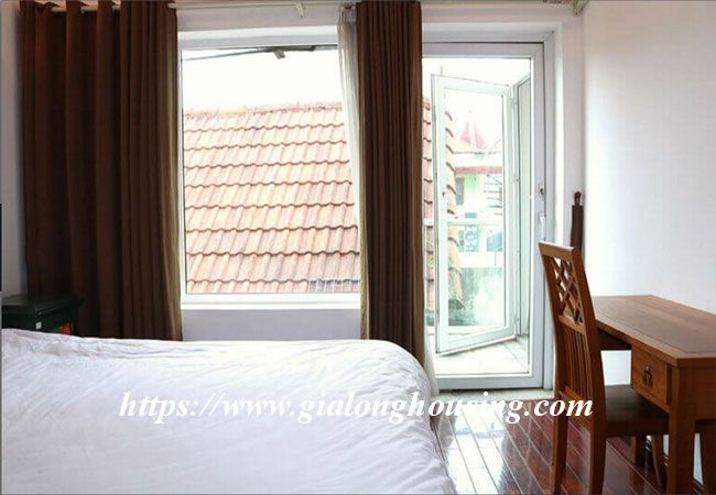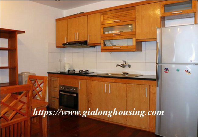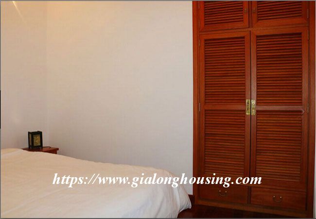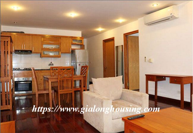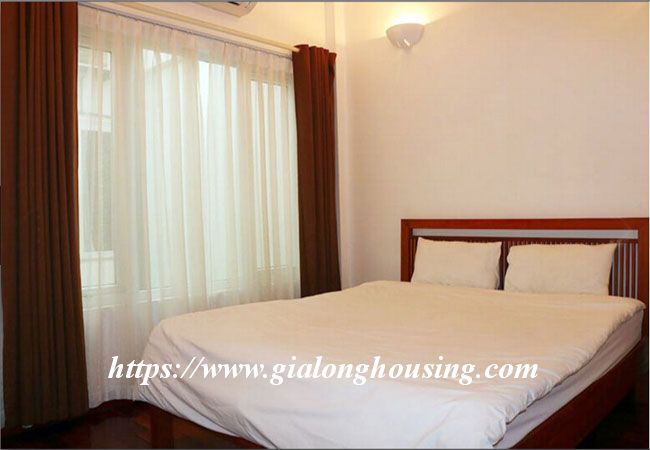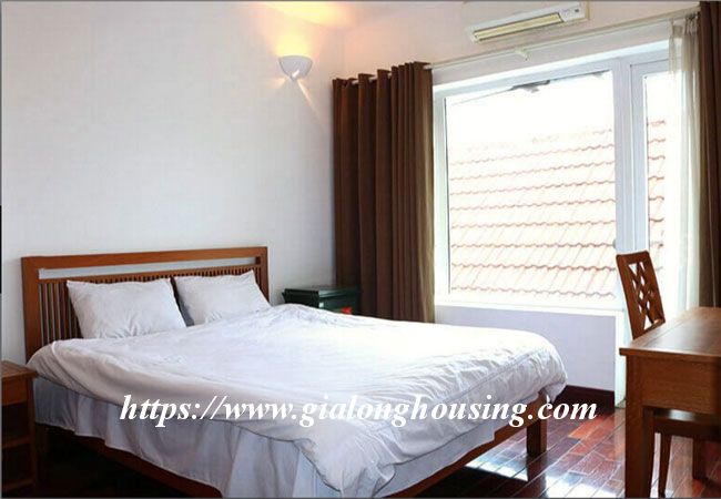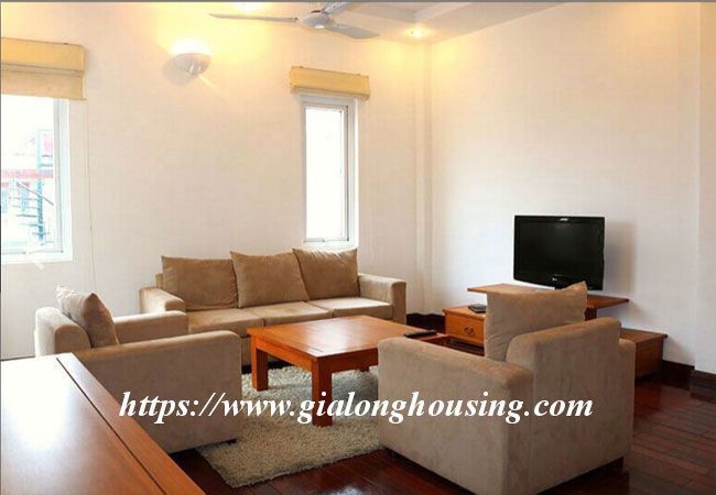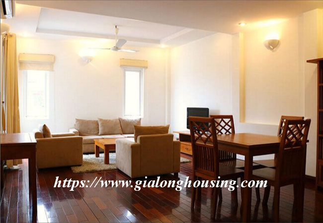 This nice serviced apartment is located in Quang An, one minute to West lake and few minutes to Xuan Dieu main road. The total area is 90 sq m, including 02 bedrooms and 01 bathroom. The whole apartment is full of natural light and fresh air. The furniture and equipment are modern and convenient for the tenants to use in long term. The price includes: cable TV, wireless internet and tap water.