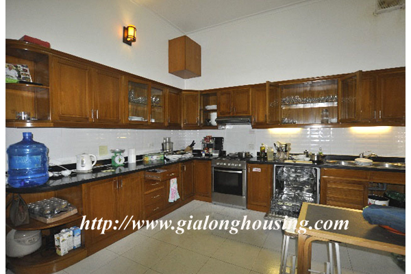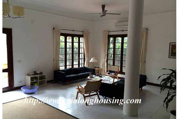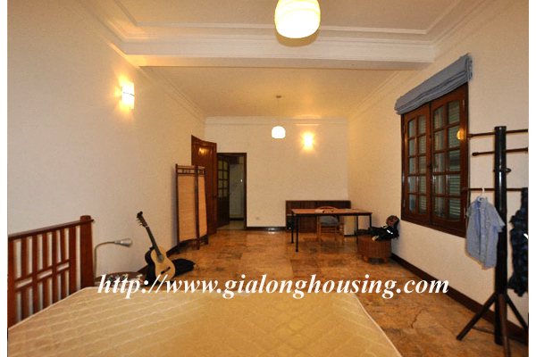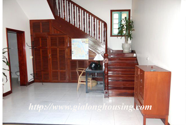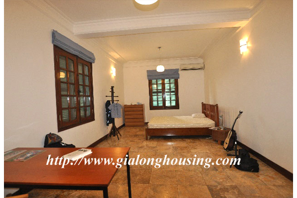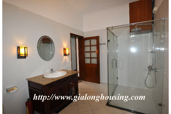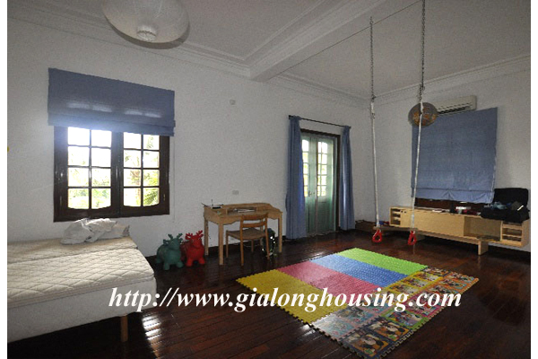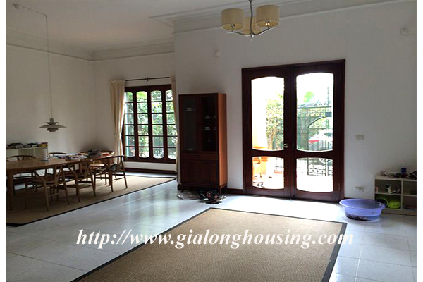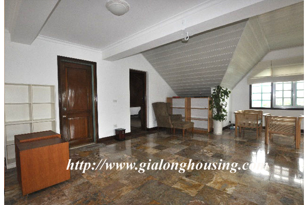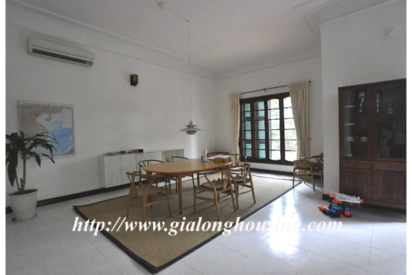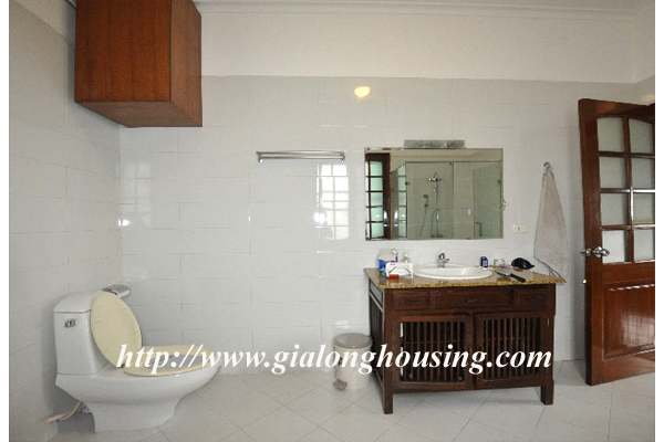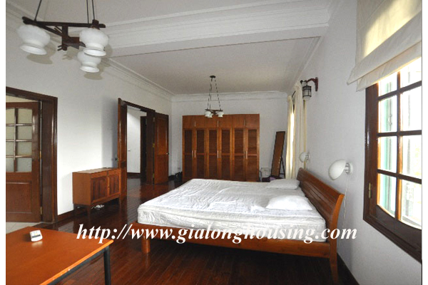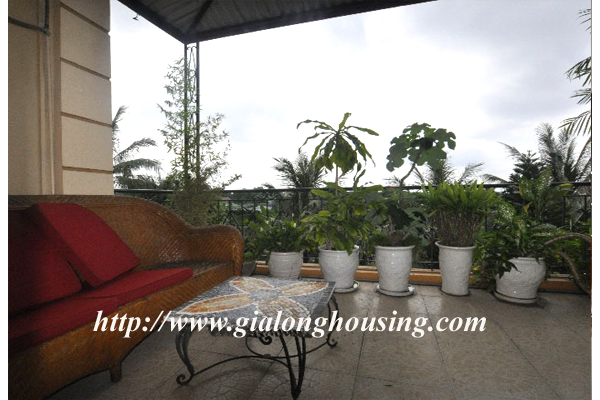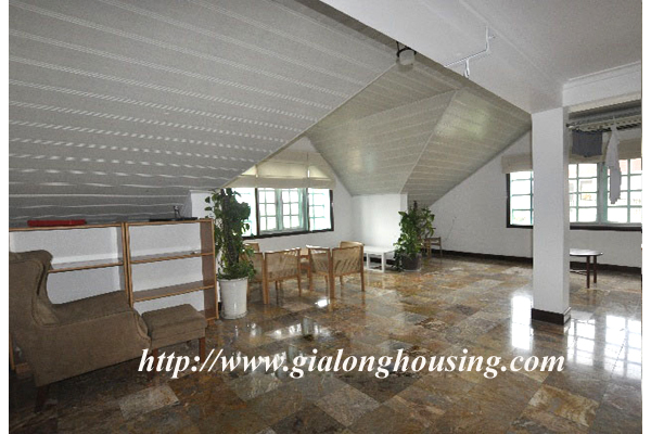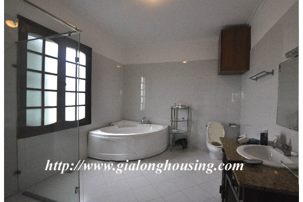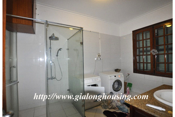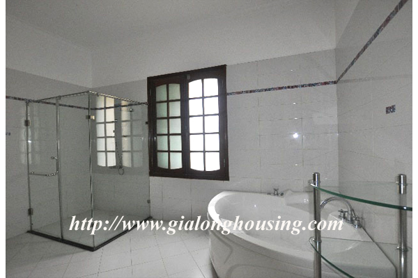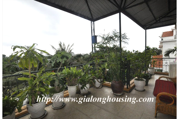 Beautiful villa for rent in Xom Chua, Dang Thai Mai street, Tay Ho district, Hanoi with land area is 200 sqm construction area is 120 sqm x 3 stories + roof-top, front yard, balcony, terrace so the total area of 350 sqm is designed as follows: the first floor for living room and kitchen + dining room, the second floor for 2 bedroom 2 dollars and 1 wide common bathroom , the third floor for 2 bedrooms with 2 closed toilets, the fourth floor 01 bedroom and laundry area and terrace. The rental price is $ 2800