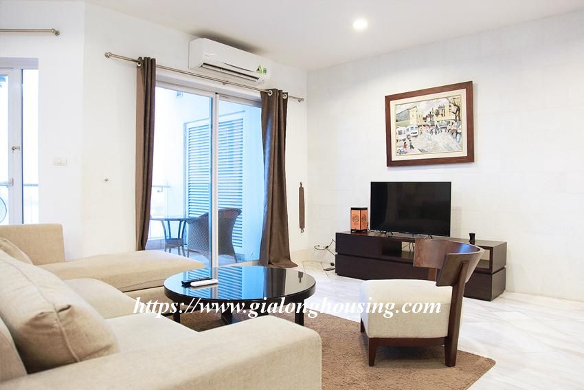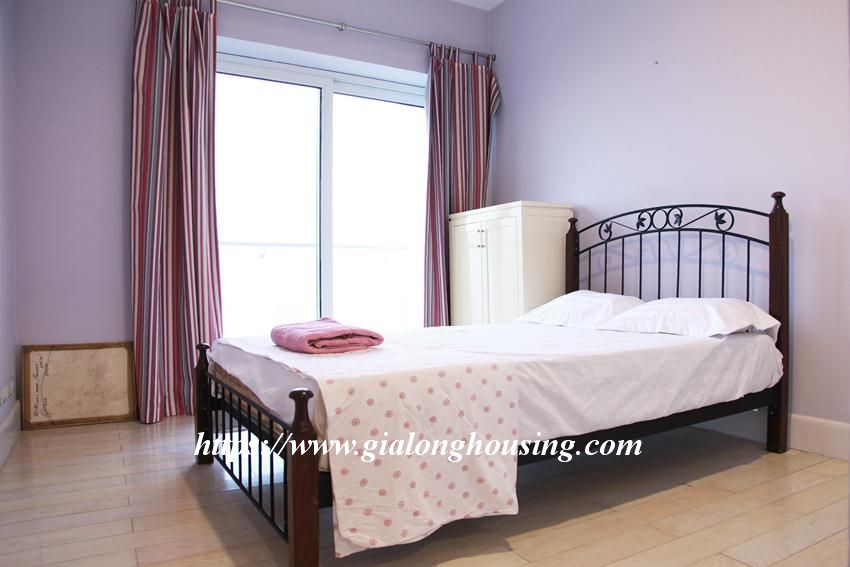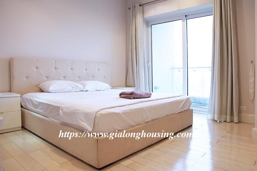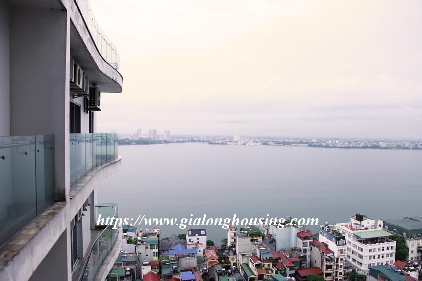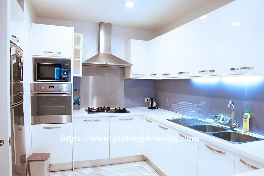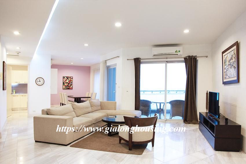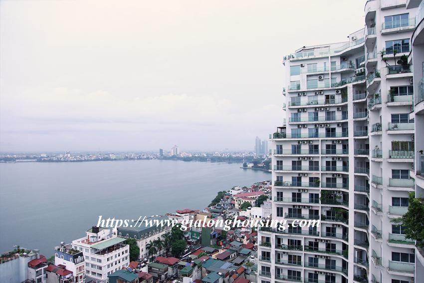 This bright and modern apartment is located in high floor of Golden Westlake building, between Thuy Khue and Hoang Hoa Tham street. The apartment has beautiful view from the large balcony. The total area is 195 sq m, 03 bedrooms and 03 bathrooms. The living room and the kitchen are combined with modern style. The building has swimming pool, security 24/24, gym and kindergarten.