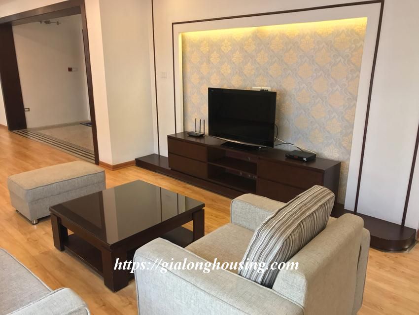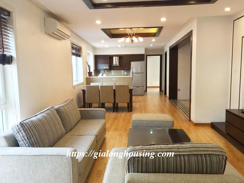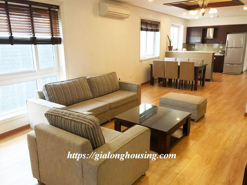 This fully furnished apartment is for rent with all modern and high quality furniture and equipment. The size is up to 130 sq m, 03 bedrooms (01 master, 01 guest bedroom and 01 multi-functional room). The whole apartment is bright due to the big glasses windows. Ready for you to move in immediately.